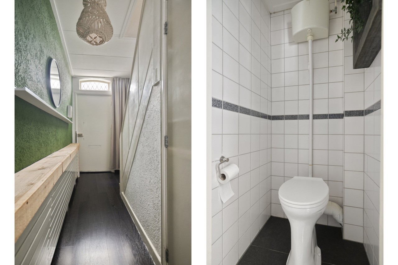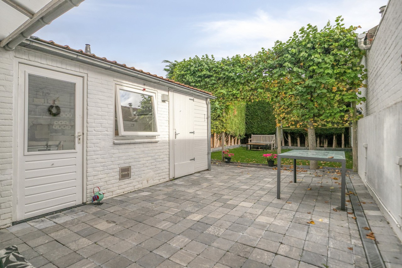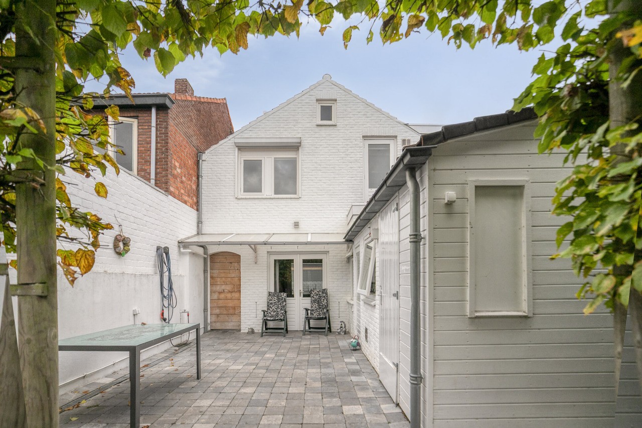 De achtertuin is een heerlijk plekje, beschut en privé met een fijn terras en groene beplanting. Je kunt er via een eigen zijgang met berging komen, handig voor fietsen of tuingereedschap.