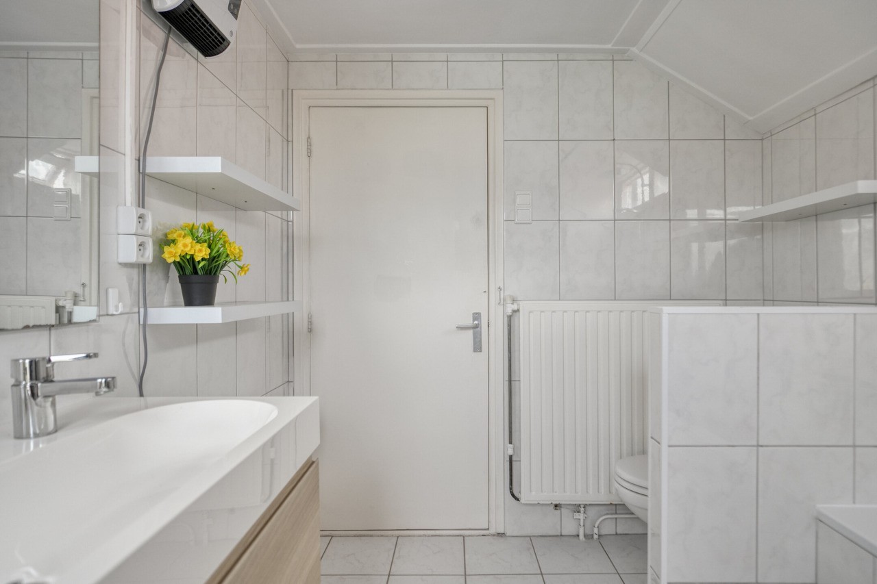 Op de eerste verdieping vind je drie slaapkamers, waarvan twee met vaste kasten. De badkamer is ruim en voorzien van ligbad, douche, wastafel en toilet. Er is bovendien een mooie mogelijkheid om een dakterras te maken.