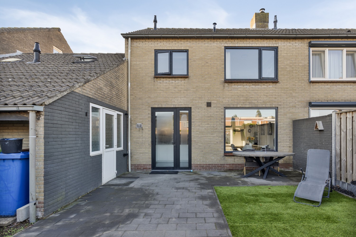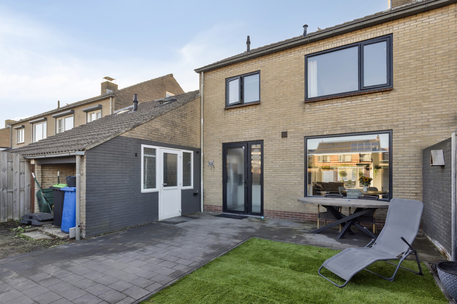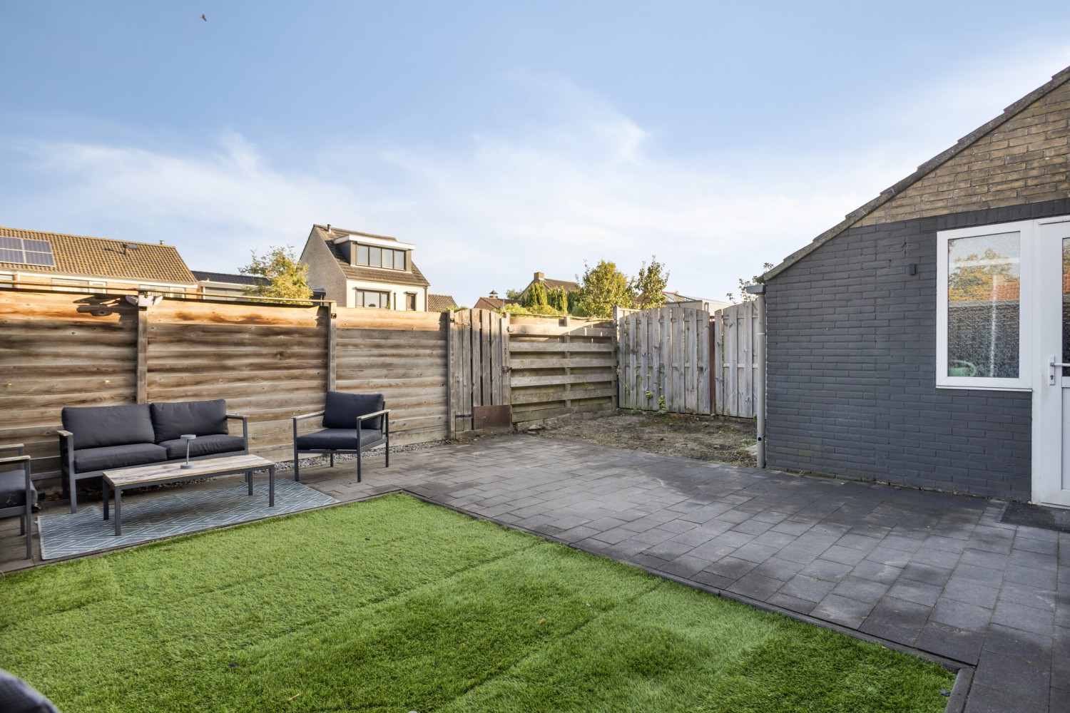 De achtertuin is onderhoudsvriendelijk ingericht en ligt op het noordwesten, waardoor je zowel van de ochtend- als van de middagzon kunt genieten. Een strak gazon wordt afgewisseld met gezellige terrassen, ideaal om te ontspannen, te spelen of te barbecueën. Dankzij de vrije achterom is de tuin bovendien gemakkelijk bereikbaar met de fiets of voor het opslaan van tuinspullen. De tuin biedt een prettige mix van privacy, zon en ruimte om buiten te leven.