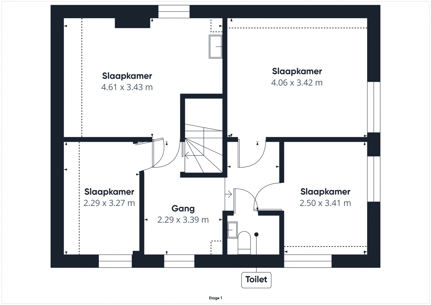 Op de eerste verdieping vind je een overloop die toegang biedt tot vier slaapkamers en een separaat toilet met fonteintje. Eén van de slaapkamers beschikt over een wastafel, waardoor de verdieping erg praktisch is voor een gezin of logees.