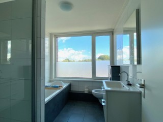 Via vaste open trap bereik je de 2de verdieping, ruime slaapkamer met inbouwkasten, kleinere slaapkamer met inbouwkasten, betegelde badkamer voorzien van douche, ligbad en wastafelmeubel en toilet.