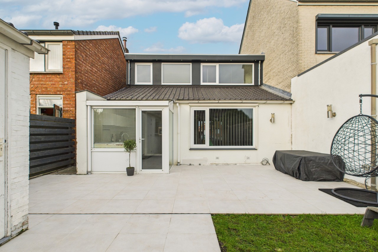 De achtertuin ligt op het zuiden en is onderhoudsvriendelijk aangelegd met een net gazon en een fijn terras direct aan de woning. Een vrijstaande stenen berging met witgoedaansluiting en elektra biedt veel praktische mogelijkheden, terwijl een vrije achterom de tuin eenvoudig bereikbaar maakt.