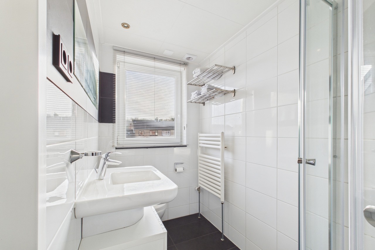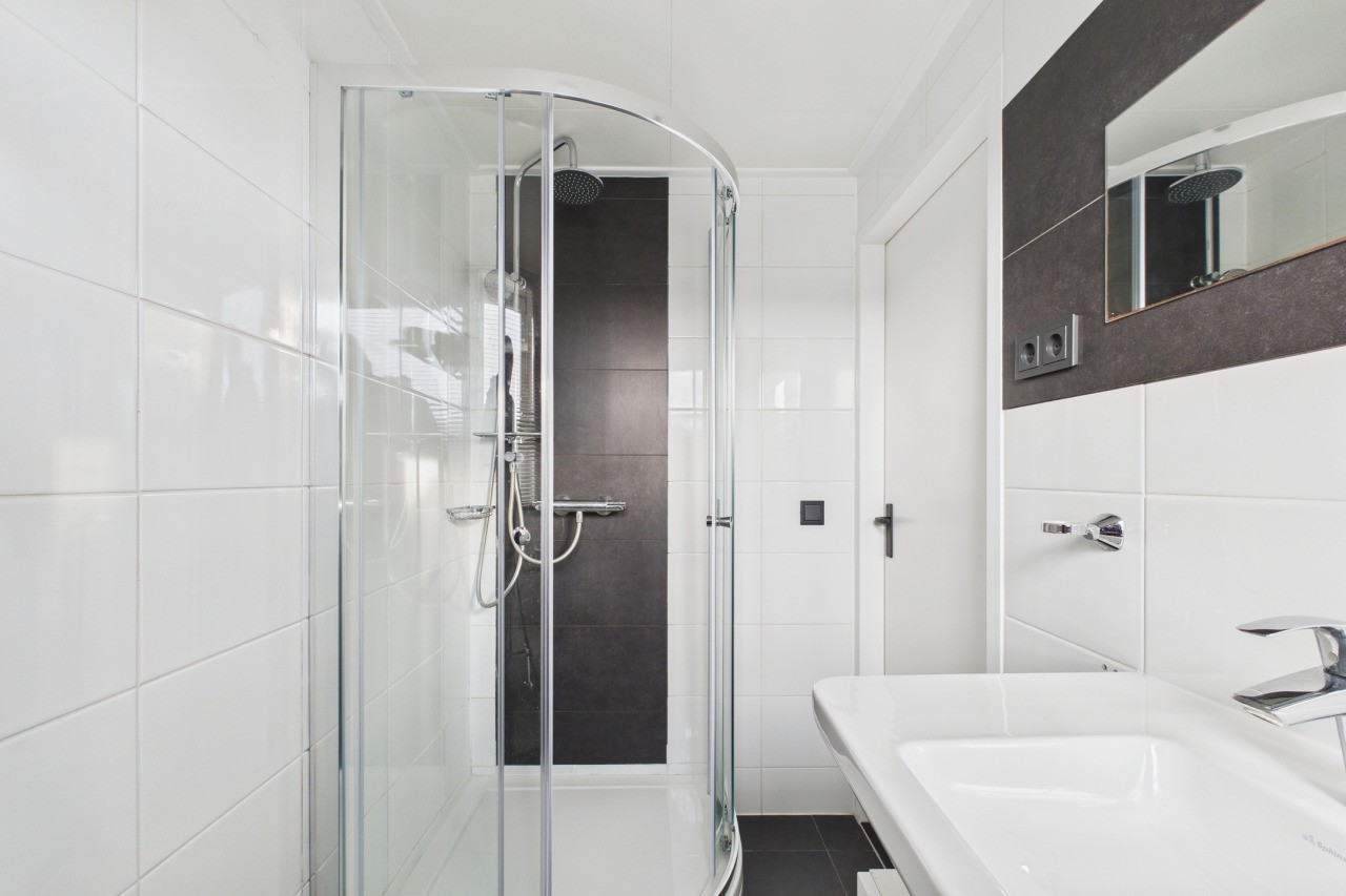 Op de eerste verdieping vind je drie slaapkamers, waarvan de ouderslaapkamer de volledige lengte van de verdieping beslaat. Twee van de kamers geven via een vlizotrap toegang tot de bergzolder. De moderne badkamer is voorzien van een douche, toilet en een wastafel met meubel, waardoor comfort en functionaliteit hand in hand gaan.