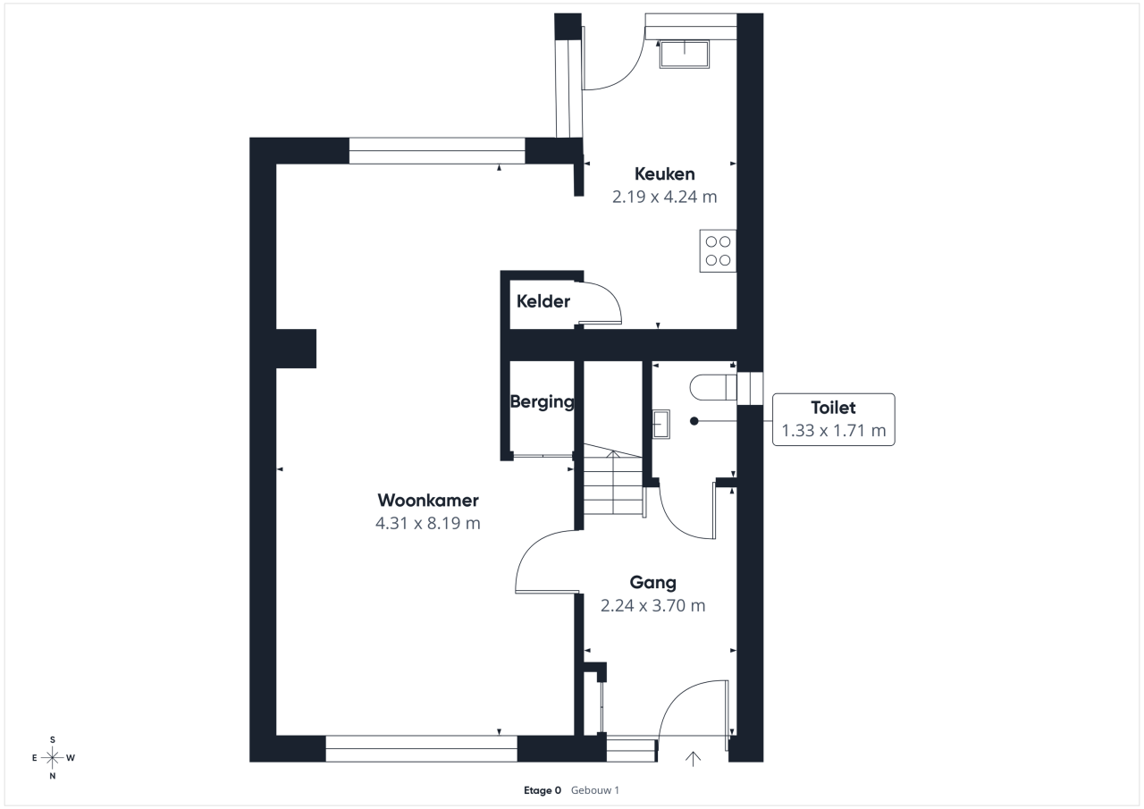 Bij binnenkomst word je verwelkomd in een ruime gang, met toegang tot het toilet met fonteintje, de meterkast en de trap naar de eerste verdieping. De doorzonwoonkamer baadt in het licht en biedt een gezellige zithoek aan de voorzijde en een eethoek aan de achterzijde. Onder de trap is een praktische berging gecreëerd. De halfopen, moderne keuken is licht en voorzien van diverse inbouwapparatuur, met daarnaast toegang tot de kelder voor extra bergruimte en een deur naar de achtertuin.