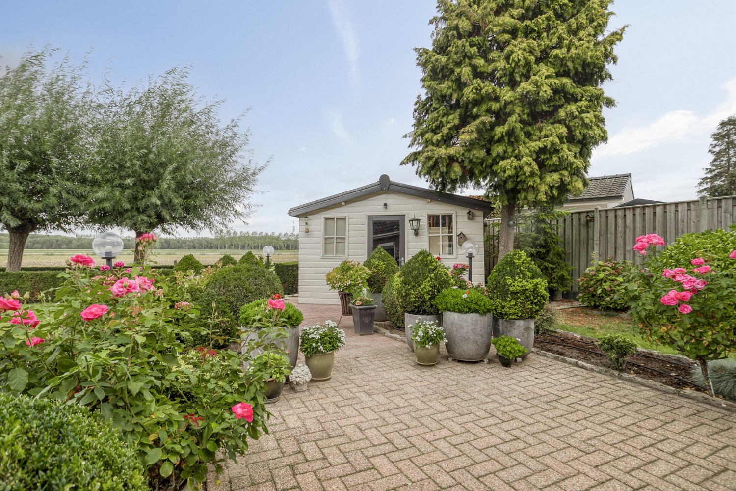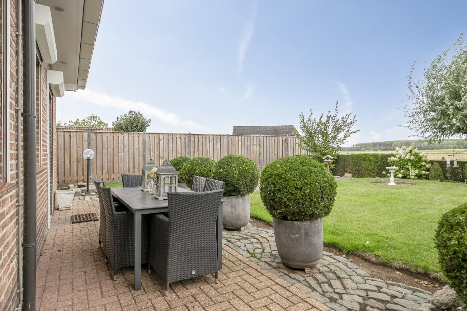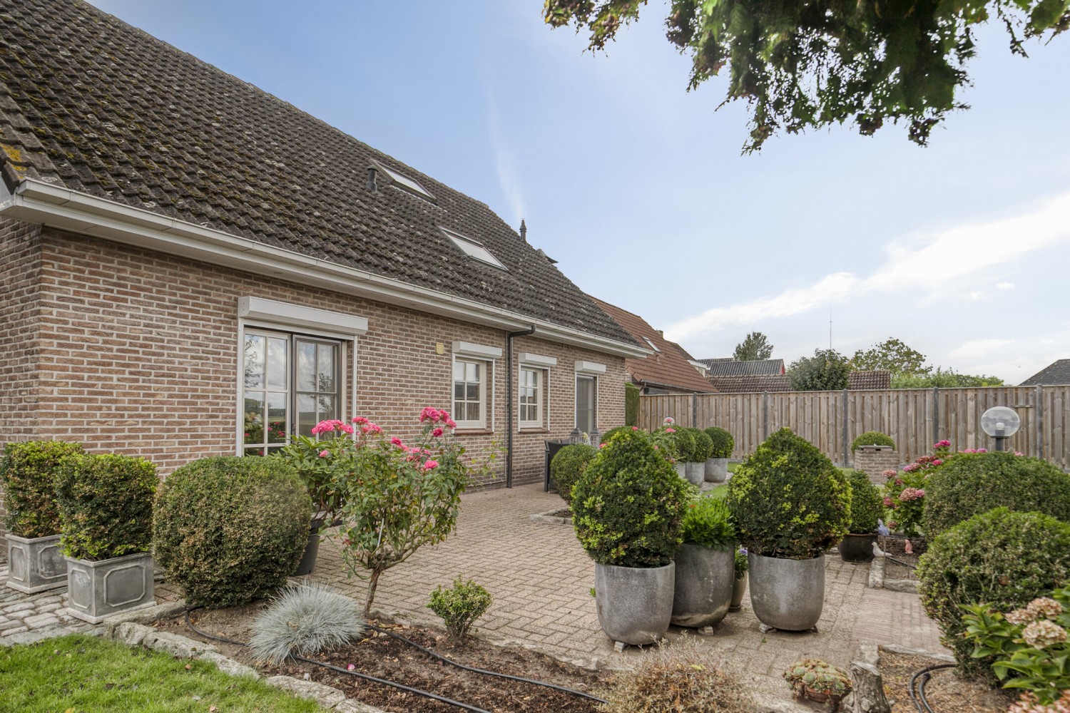 De fraai aangelegde tuin is een oase van rust en ruimte, met als absolute blikvanger het schitterende, vrije uitzicht over het achtergelegen Zeeuws-Vlaamse polderlandschap. Het houten tuinhuis biedt extra bergruimte. In deze tuin geniet je volop van privacy, groen en het heerlijke buitenleven!
