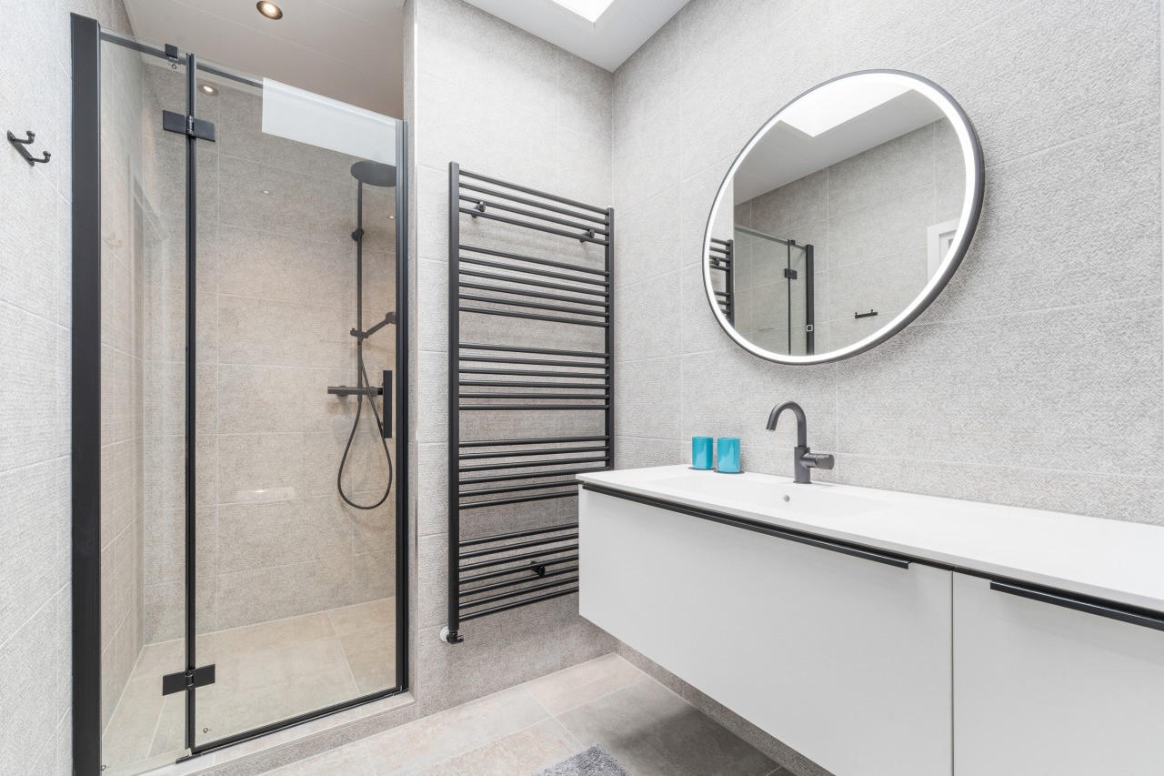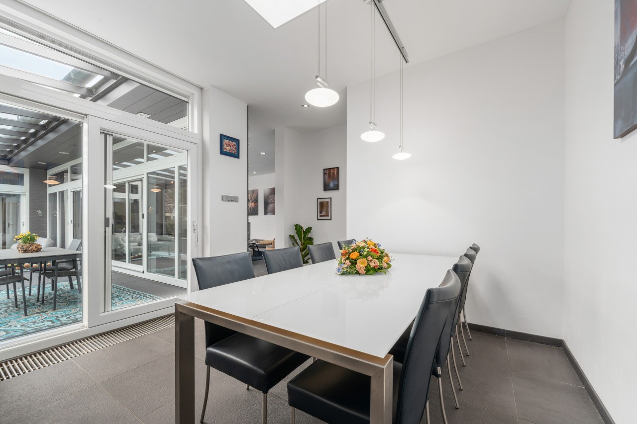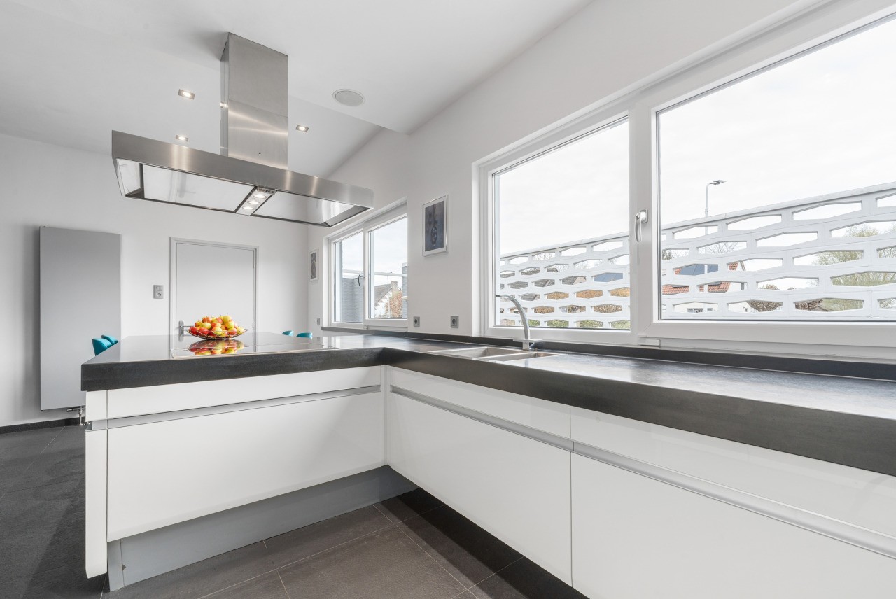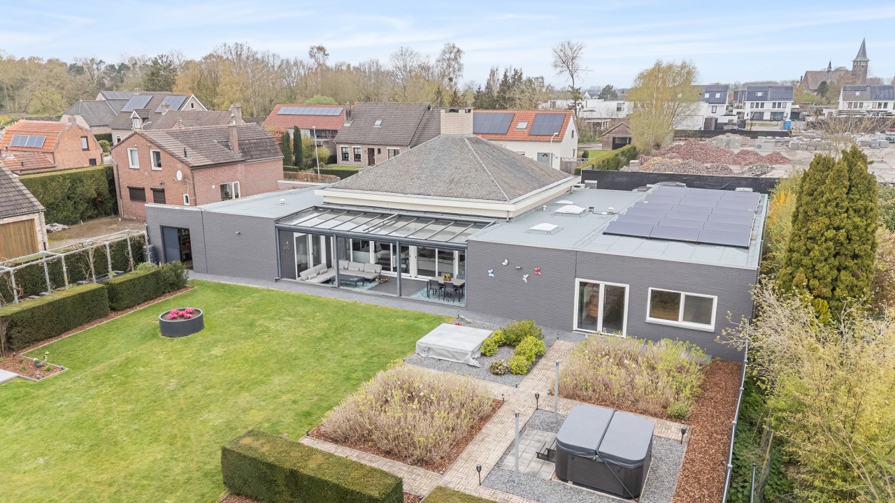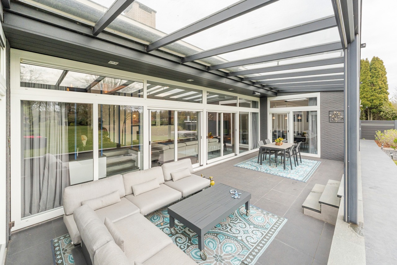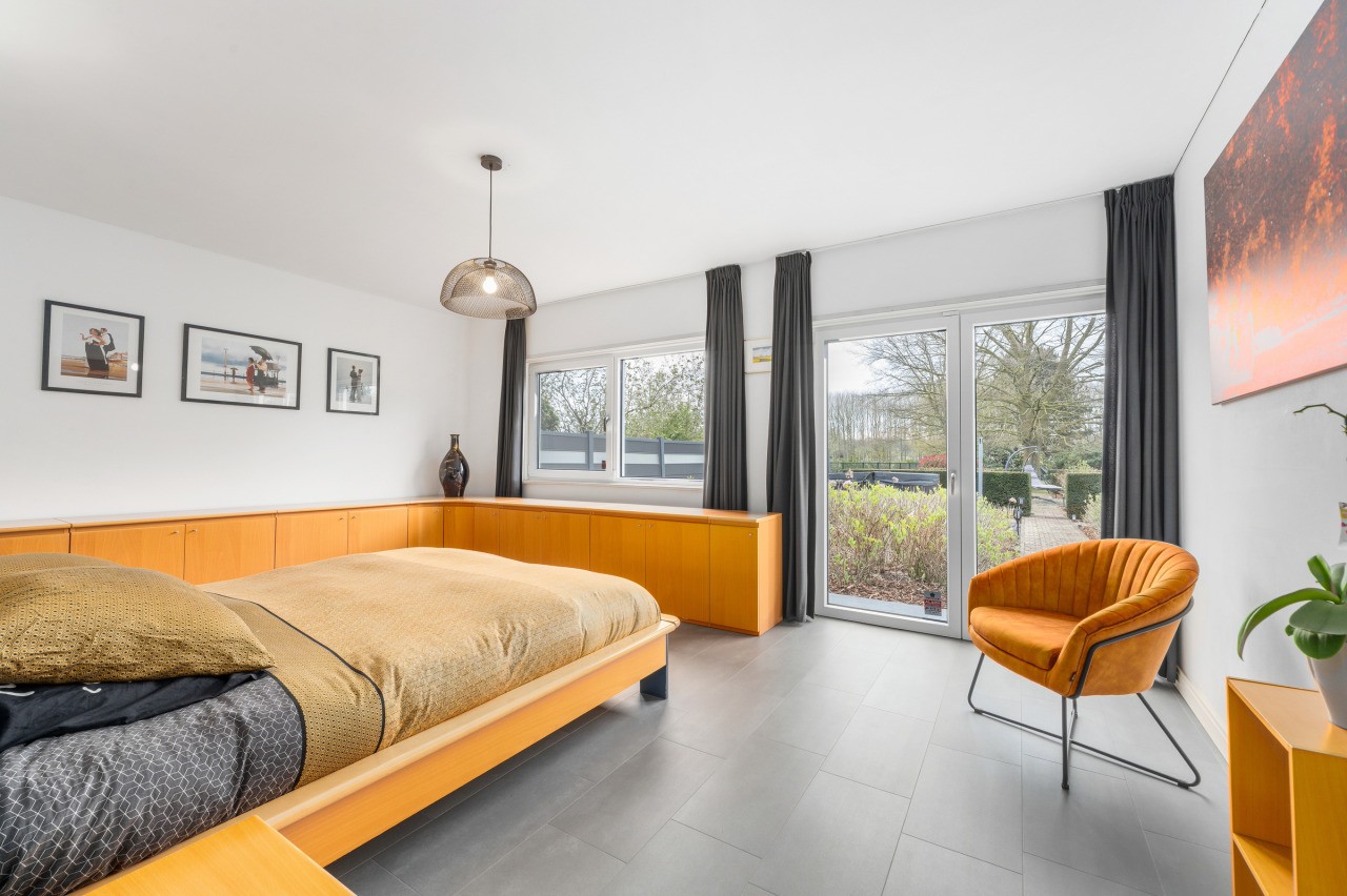 De moderne, volledig ingerichte keuken met eiland is strak en functioneel, voorzien van alle comfort, met aansluitend een praktische bijkeuken. Zowel vanuit de keuken als de leefruimte heb je directe toegang tot de veranda en het overdekte terras, compleet met screens.