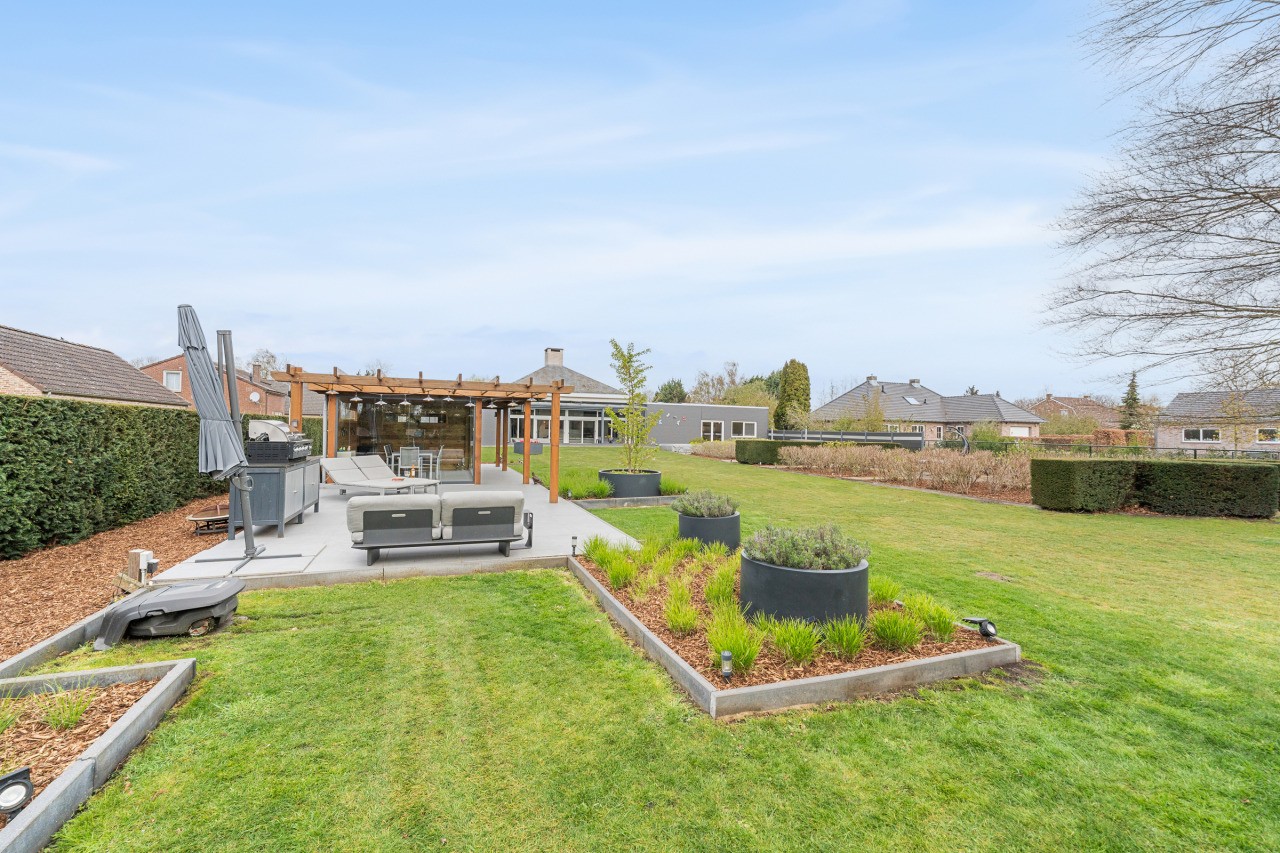 Buiten wordt het verhaal compleet. De fraai aangelegde achtertuin is een rustpunt met een open zicht op de omliggende weilanden en het natuurgebied richting België. De aparte tuinlounge maakt van deze plek een echte genietplek, perfect voor lange zomeravonden of gezellige momenten met vrienden en familie.