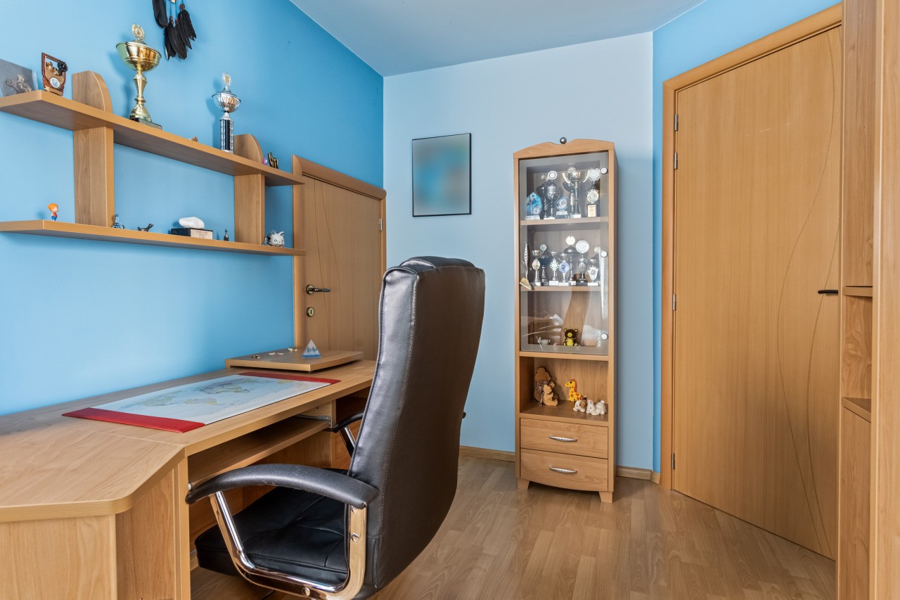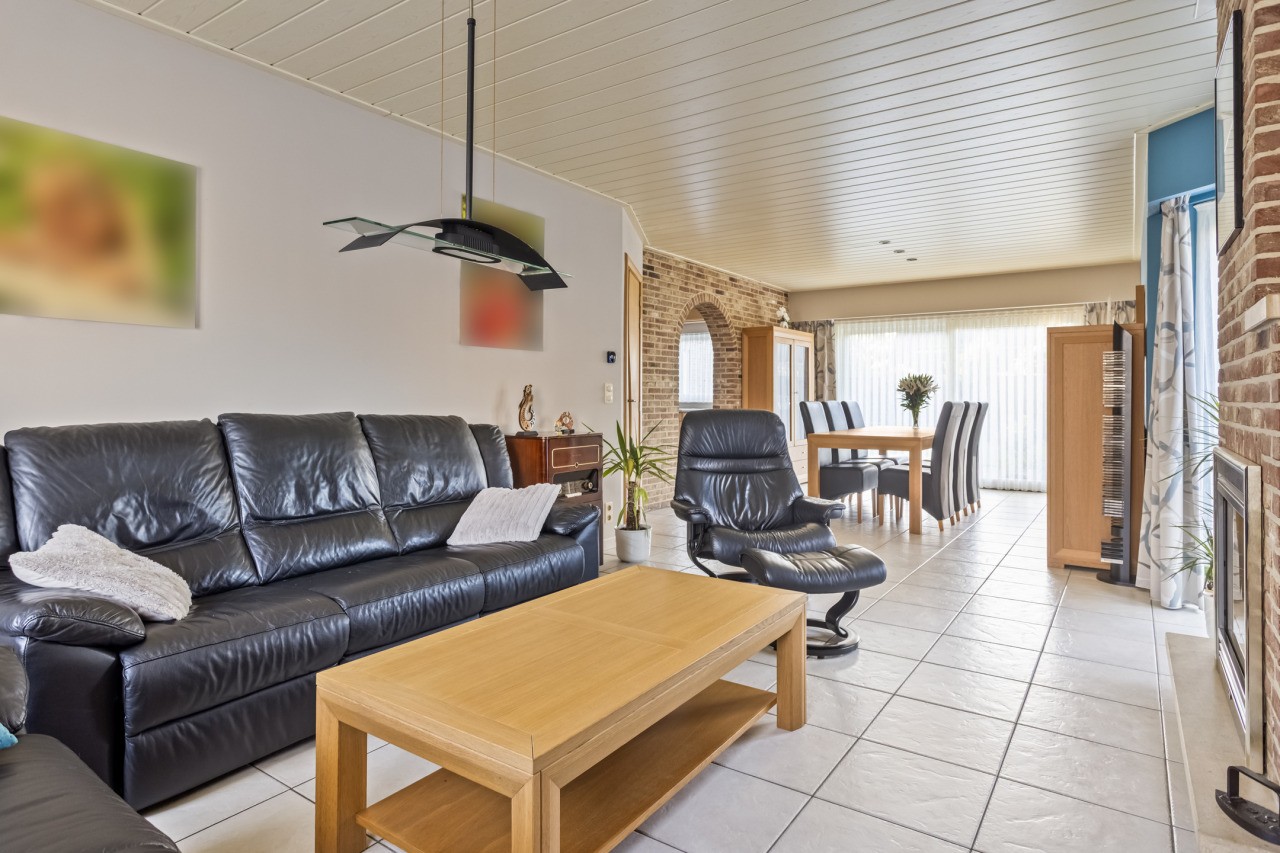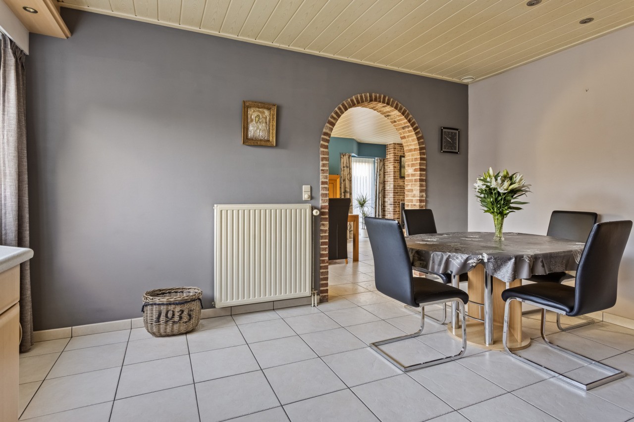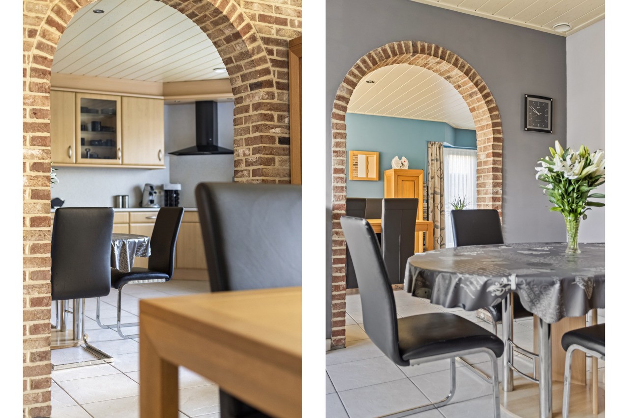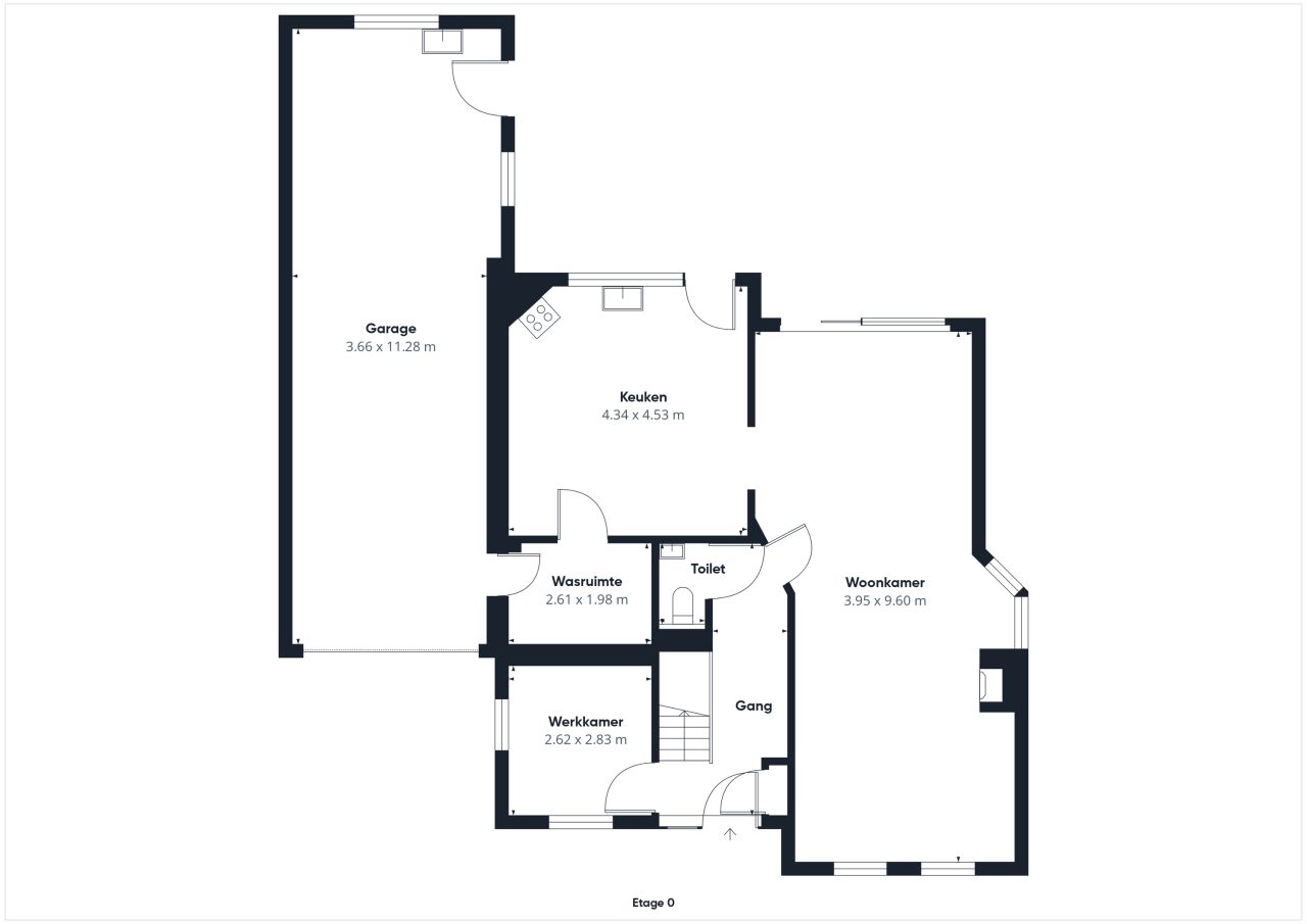 Via de hal met trapopgang, meterkast en toilet kom je binnen in de woonkamer. Links in de hal bevindt zich direct een fijne werkkamer, ideaal voor thuiswerk of als hobbyruimte. De doorzonwoonkamer is ruim en licht, met aan de voorzijde een gezellige zithoek rond de gas brandhaard en aan de achterzijde een eethoek met schuifpui naar de tuin. De open woonkeuken sluit hier mooi op aan en biedt volop ruimte voor een eettafel. De keuken is uitgerust met inbouwapparatuur en geeft toegang tot zowel de achtertuin als de praktische bijkeuken. In de bijkeuken vind je de witgoedaansluitingen en een doorgang naar de garage. De ruime garage beschikt over een extra keukenblok, is voorzien van een elektrische deur en biedt toegang tot de oprit met plaats voor meerdere auto’s.