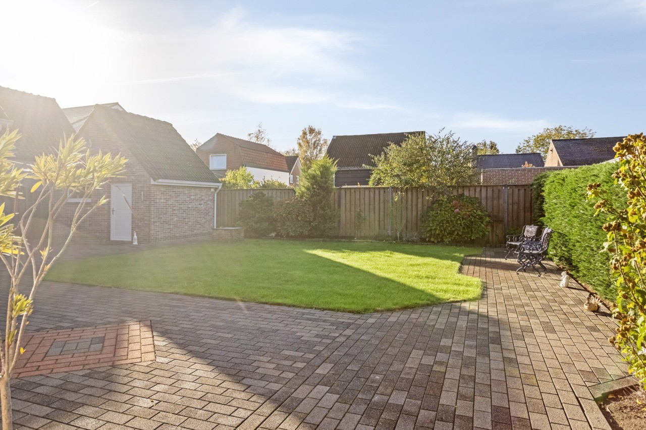 De zonnige tuin is gesitueerd op het zuidwesten en vormt een heerlijke plek om buiten te zijn. Er is een stenen, vrijstaande berging aanwezig en de tuin is bereikbaar via een vrije achterom. Dankzij de gunstige ligging geniet je hier volop van de middag- en avondzon, terwijl de groene omlijsting voor voldoende privacy zorgt. Extra praktisch zijn het automatische bewateringssysteem en de waterput van 5000 liter, waarmee je eenvoudig het gazon en de beplanting in topconditie houdt.