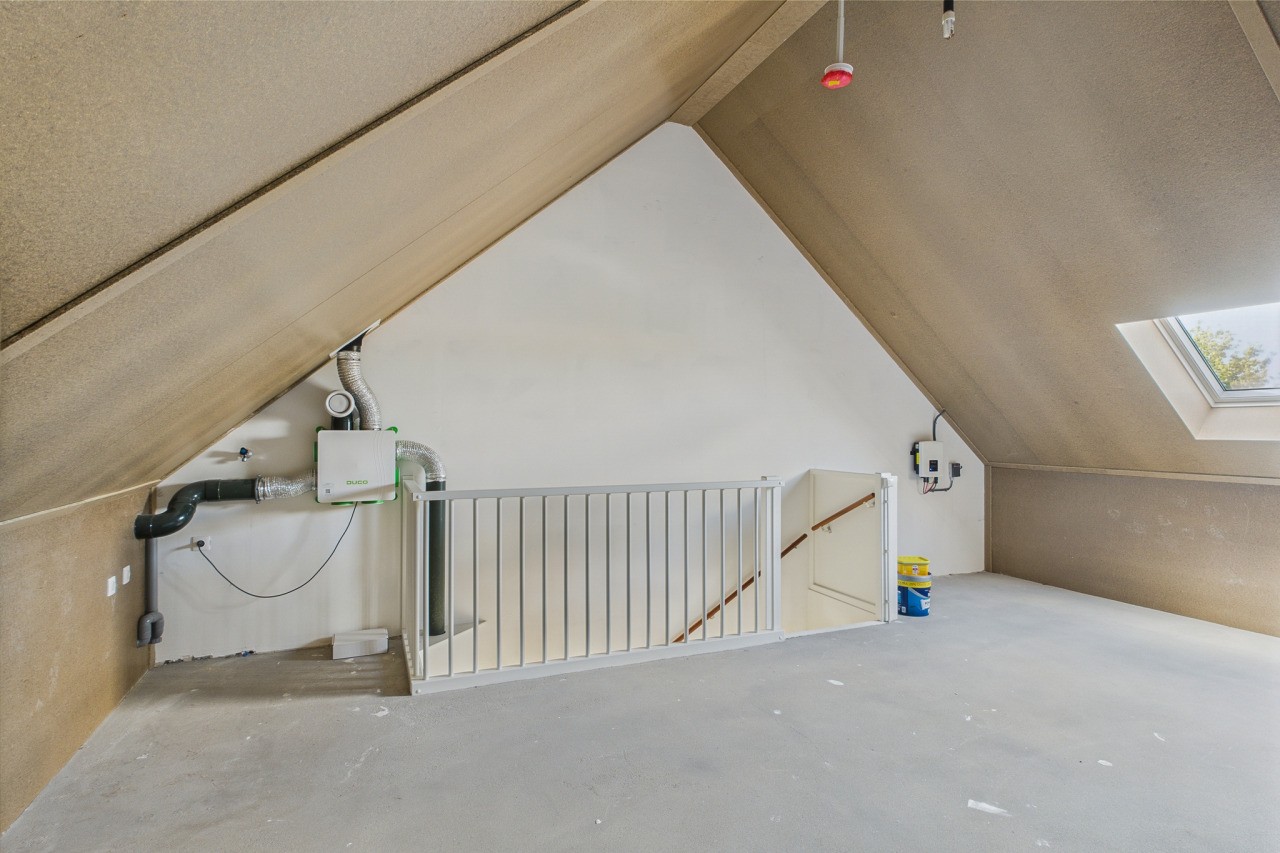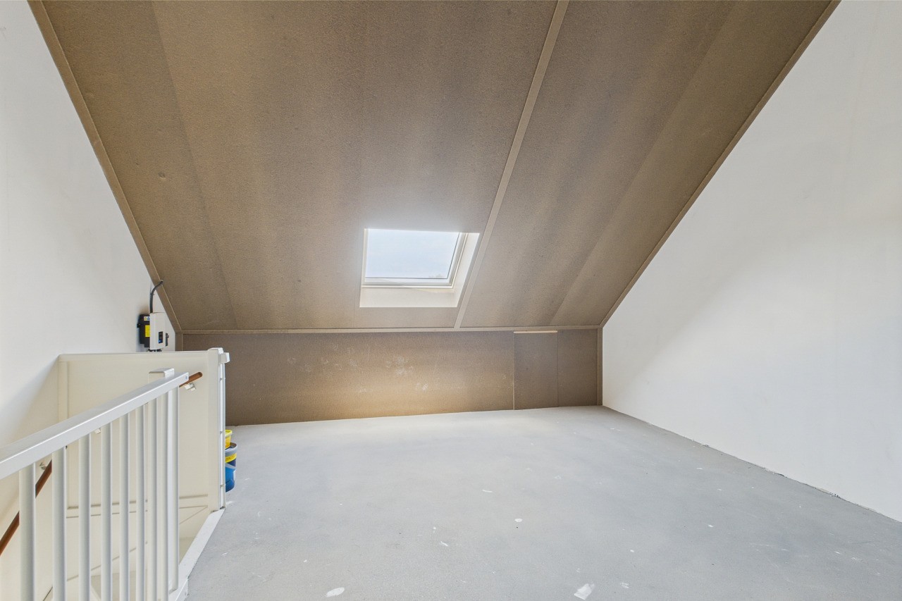 De zolder is een volwaardige extra ruimte die zich uitstekend leent als vierde slaapkamer, werk- of hobbyruimte. Hier zijn ook de technische installaties en aansluitingen voor wasmachine en droger geplaatst.