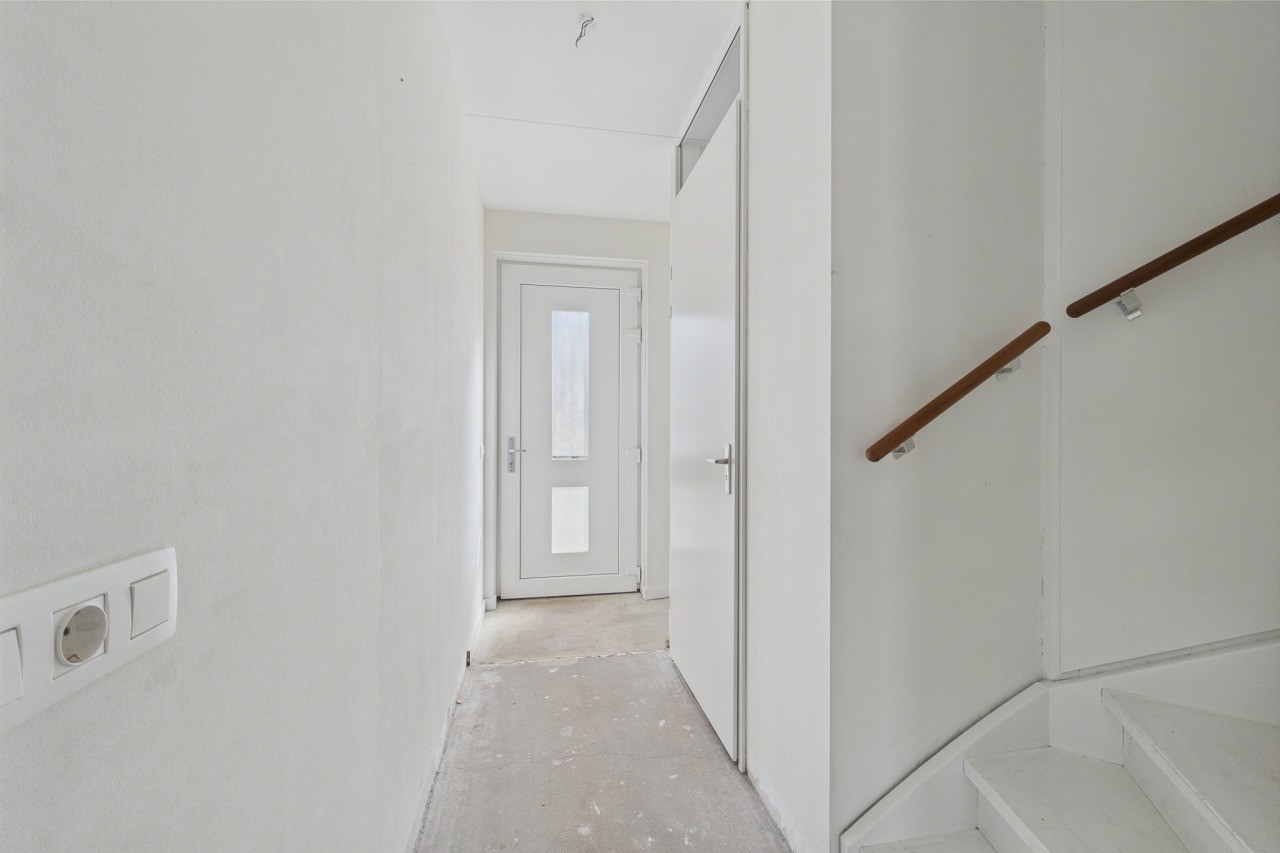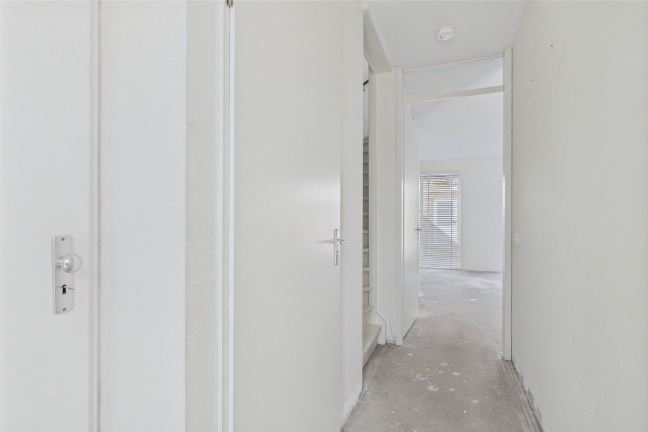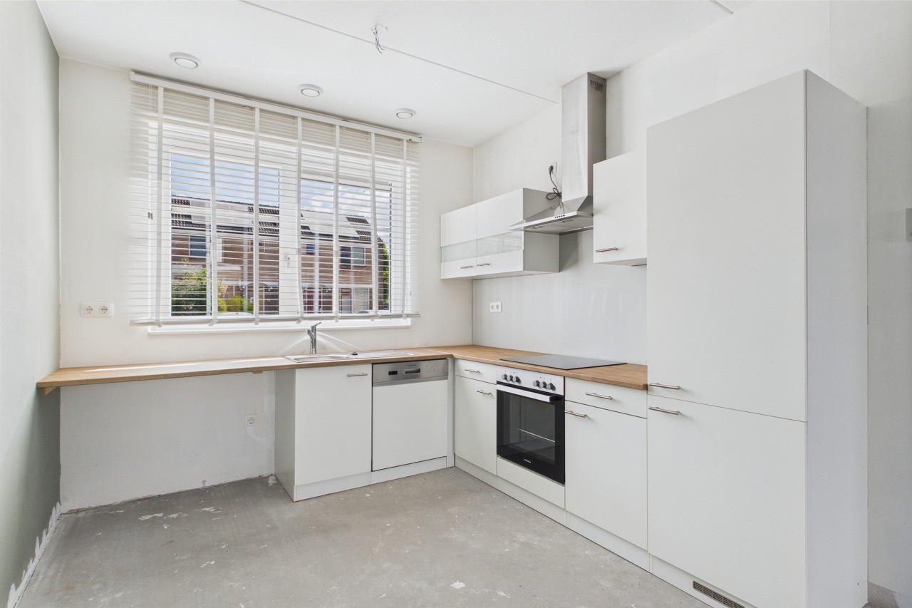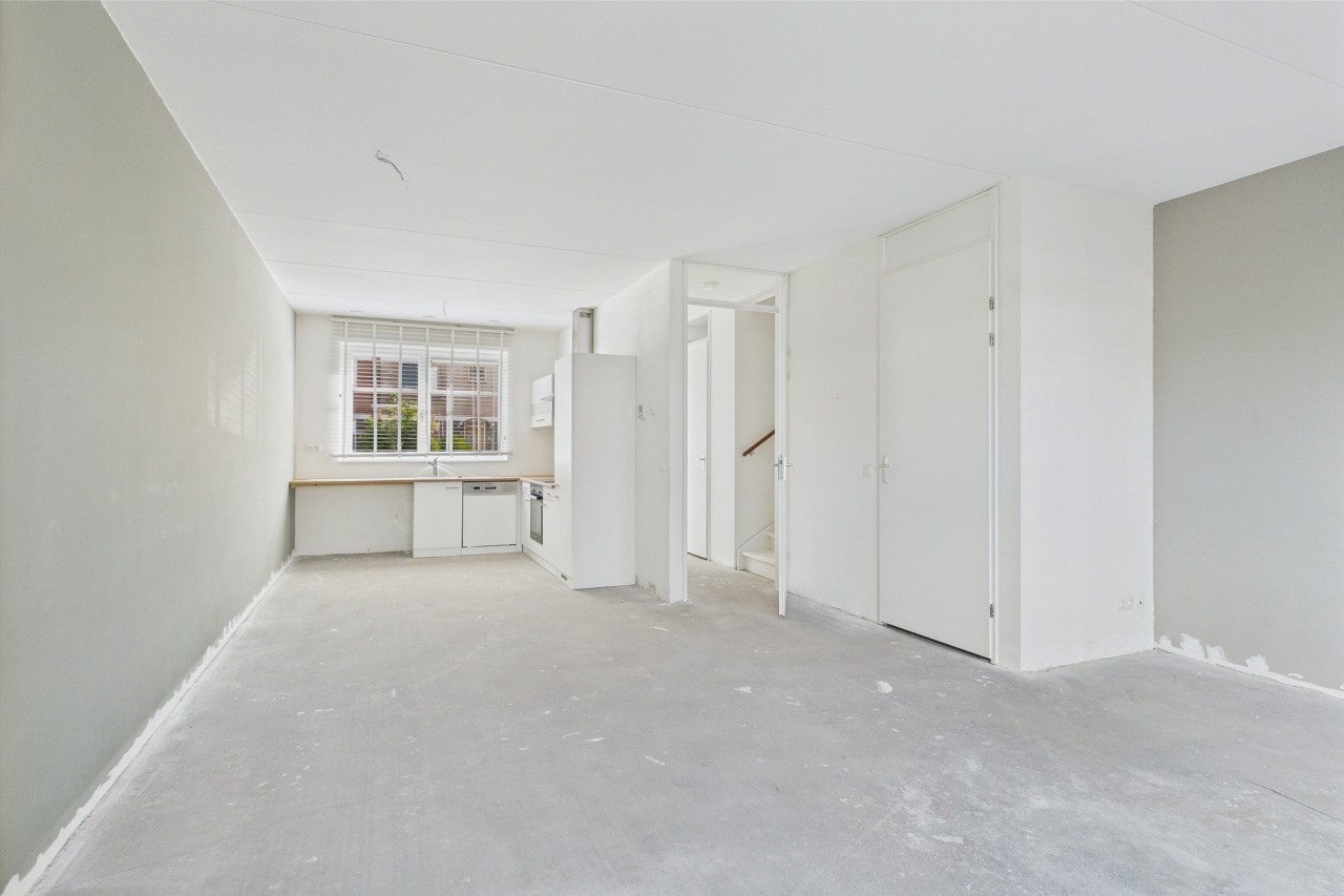 Je komt binnen in een ruime hal met meterkast, toiletruimte en een vurenhouten trap naar boven. Vanuit de hal stap je de royale, L-vormige woonkamer in – een fijne leefruimte met volop mogelijkheden voor het creëren van verschillende zit- en eethoeken. De open keuken is uitgevoerd in een hoekopstelling met wit keukenblok en voorzien van diverse inbouwapparatuur. Via dubbele tuindeuren bereik je de zonnige achtertuin, gelegen op het zuidwesten. Hier vind je ook een praktische berging en een achterom.