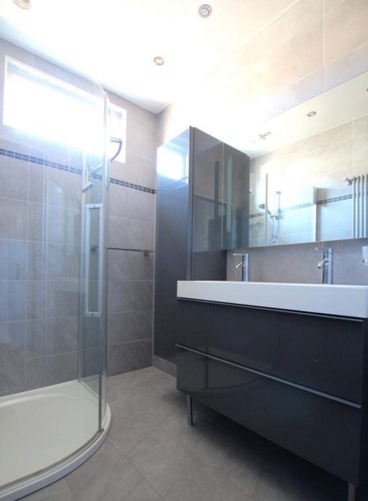 De hal geeft toegang tot de 4 slaapkamers, toilet en de nette badkamer voorzien van dubbele wastafel en nette douche.