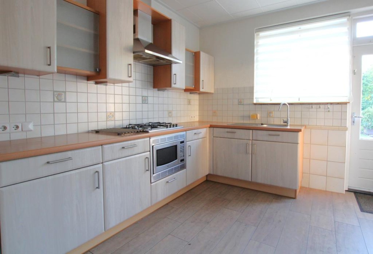Royale centrale hal met toegang tot de keuken welke is voorzien van een 4 pits gasfornuis, afzuigkap, oven, diepvries en koelkast. Vanuit de keuken bereik je de ruime doorzonwoonkamer.