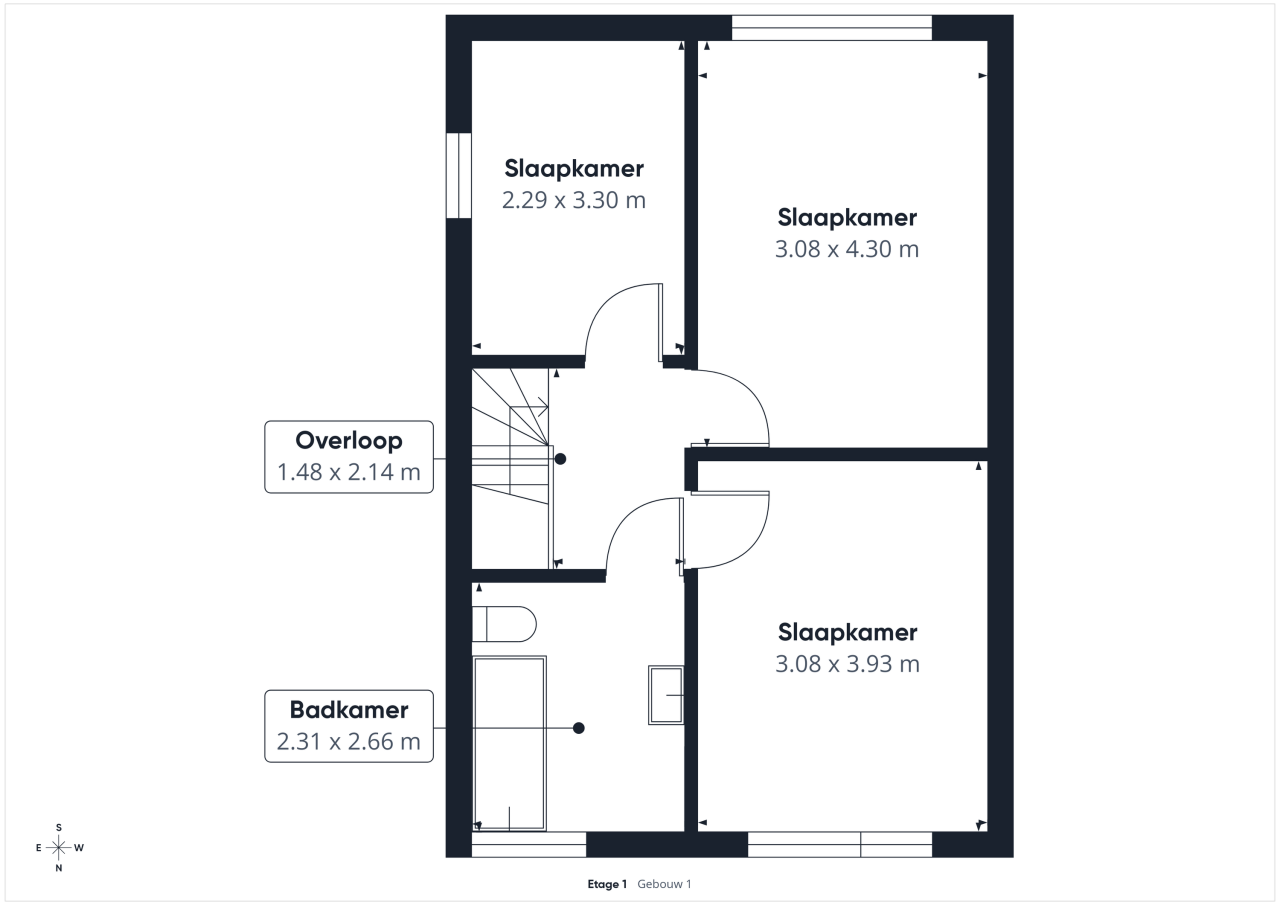 Op de eerste verdieping bevinden zich drie slaapkamers en een complete badkamer met ligbad, douche, wastafel, toilet en aansluiting voor het witgoed. Deze verdieping is licht en praktisch ingedeeld, met genoeg ruimte voor het hele gezin.