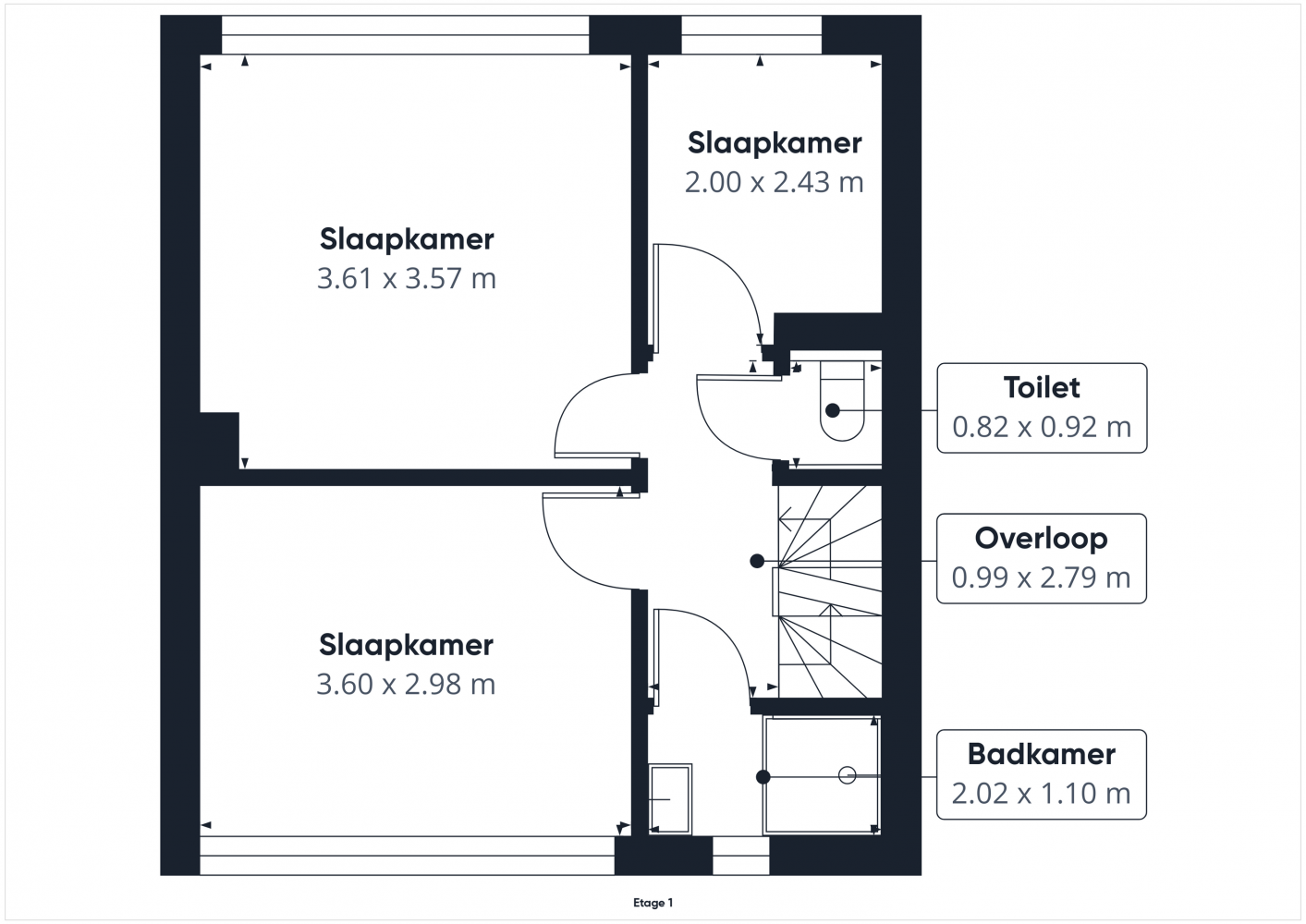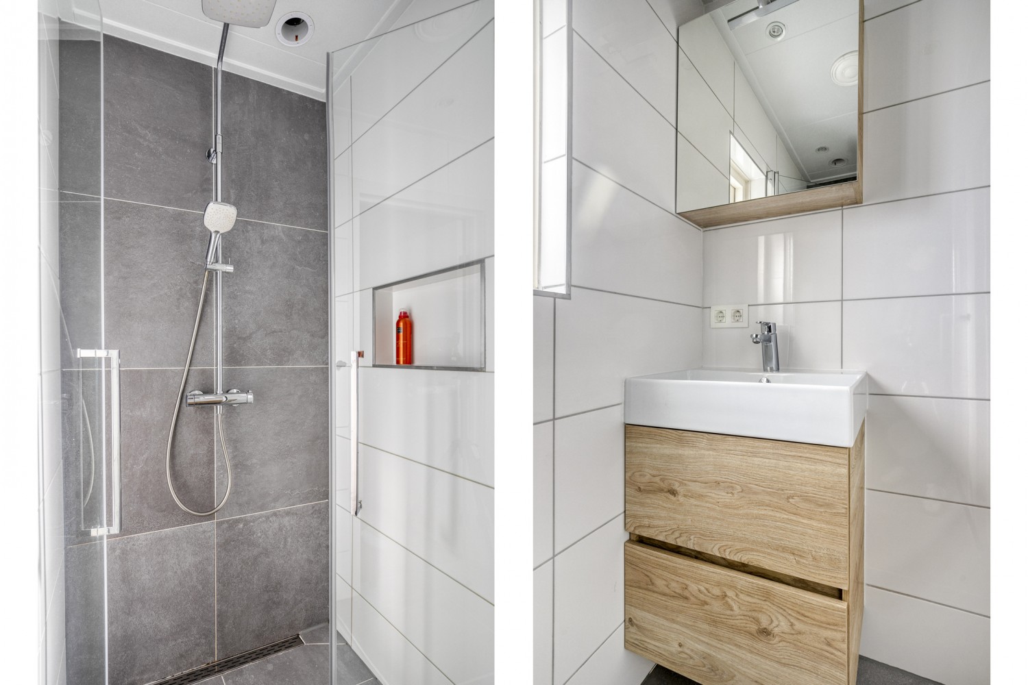 Op de eerste verdieping bevinden zich drie slaapkamers, stuk voor stuk netjes afgewerkt en klaar voor gebruik. De badkamer is voorzien van een douche en wastafel en er is een apart toilet aanwezig, een fijne extra in het dagelijks gebruik.