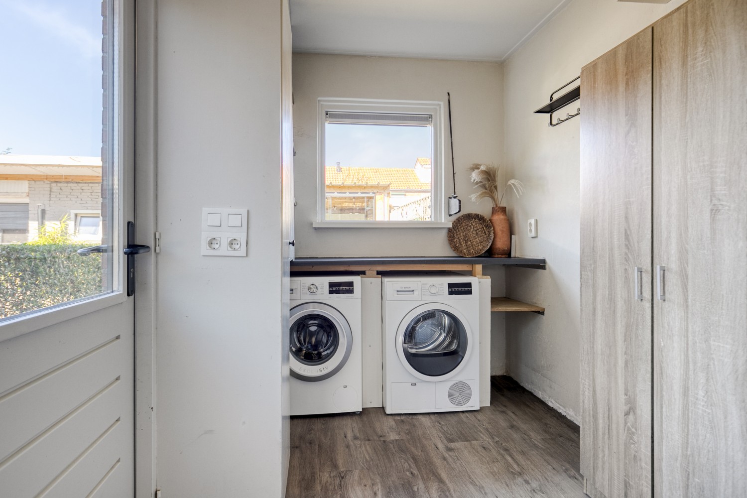 De tuin is onderhoudsarm aangelegd en ligt op het noordoosten. Dankzij de royale overkapping kun je hier van vroeg in het voorjaar tot laat in het najaar heerlijk buiten zitten, ook als het weer wat minder is. De extra ruime garage biedt mogelijkheden te over: van stalling en opslag tot een fijne klus- of hobbyruimte. De vrije achterom maakt het plaatje compleet.