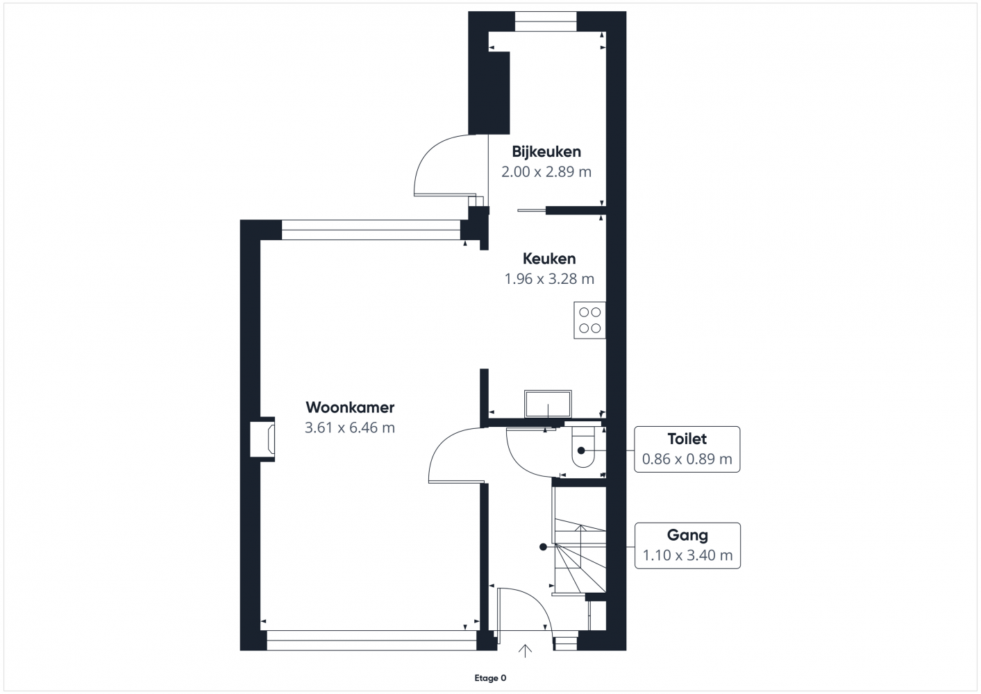 Bij binnenkomst kom je in de hal met de trapopgang, meterkast en het toilet. Vanuit hier stap je de woonkamer in: een lichte doorzonkamer waar de gezellige haard meteen de blik vangt. Hier is genoeg ruimte voor een fijne zithoek en een grote eettafel waar je samen met familie en vrienden lange avonden kunt doorbrengen. De open keuken sluit hier perfect op aan en is uitgevoerd met moderne inbouwapparatuur, waardoor koken een plezier wordt. Achter de keuken ligt de praktische bijkeuken met witgoedaansluitingen en een deur naar de achtertuin.