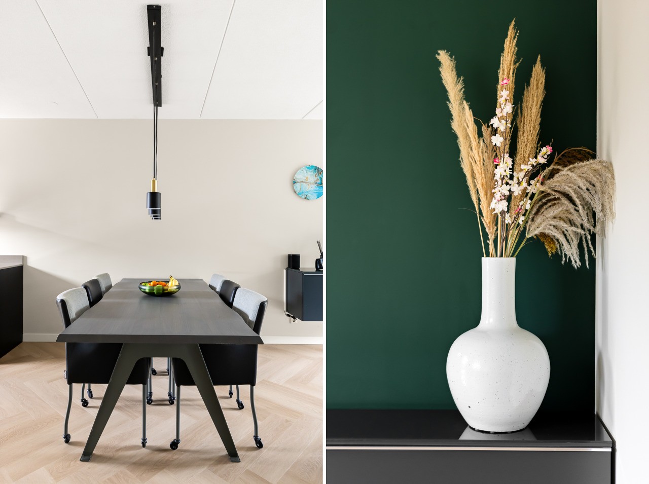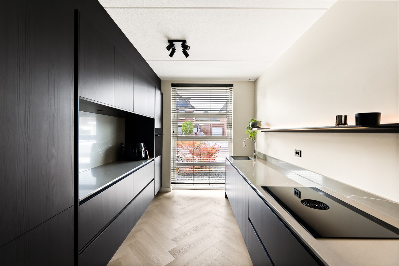 Bij binnenkomst voel je direct de verzorgde sfeer van de hal, met toegang tot het toilet met fonteintje, de meterkast en de trap naar de eerste verdieping. De lichte doorzonwoonkamer vormt het hart van de woning en is in 2024 volledig vernieuwd: de wanden zijn strak gestuct en de nette PVC-vloer zorgt voor een moderne, warme uitstraling. Via dubbele openslaande deuren, of de extra deur, stap je zo de achtertuin in. De luxe keuken, eveneens uit 2024, is uitgevoerd in een donkerhouten tint met een licht natuurstenen werkblad en voorzien van hoogwaardige apparatuur, waaronder een Bora-kookplaat en een Quooker. Een stijlvolle en praktische plek voor elke kookliefhebber. De carport en de recent opnieuw in stabilisé gelegde oprit zorgen bovendien voor comfortabel parkeren aan huis. Tevens is deze van een elektrische laadpaal voorzien.