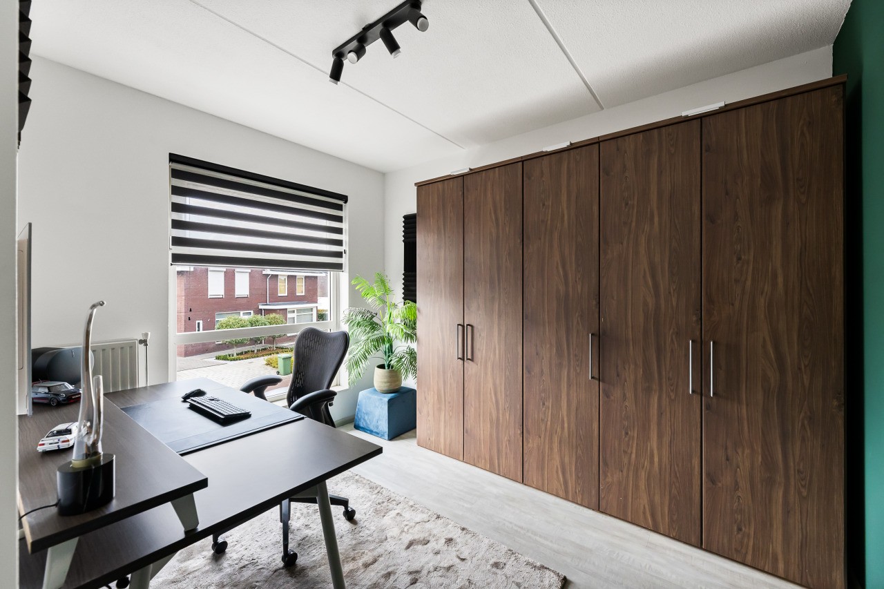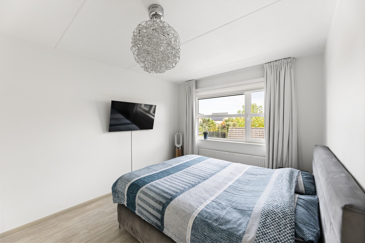 De achtertuin is een fijne verlenging van het wooncomfort. Gelegen op het oosten, met een verzorgd gazon en een royaal terras direct aan de woning, is het de ideale plek om te ontspannen, te genieten van de ochtendzon of kinderen veilig te laten spelen. Aan de woning grenst de aangebouwde stenen garage, die ruimte biedt voor opslag, fietsen of hobby’s en bovendien via de tuin bereikbaar is.