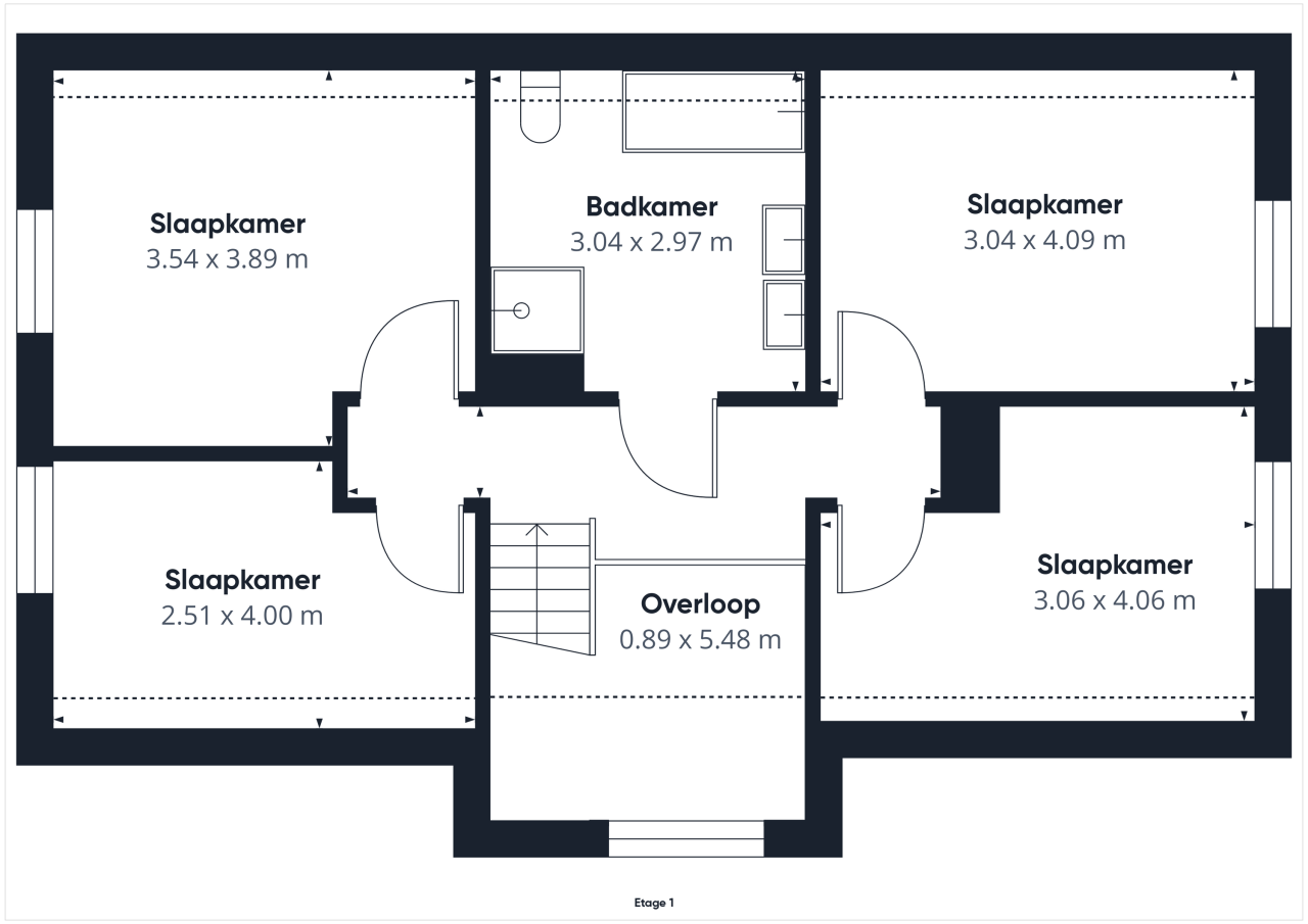Op de eerste verdieping bevinden zich vier goed bemeten slaapkamers, allemaal praktisch in te delen. De badkamer is compleet uitgerust met een ligbad, douche, dubbele wastafel en toilet, waardoor het comfort van de begane grond hier naadloos wordt voortgezet.
