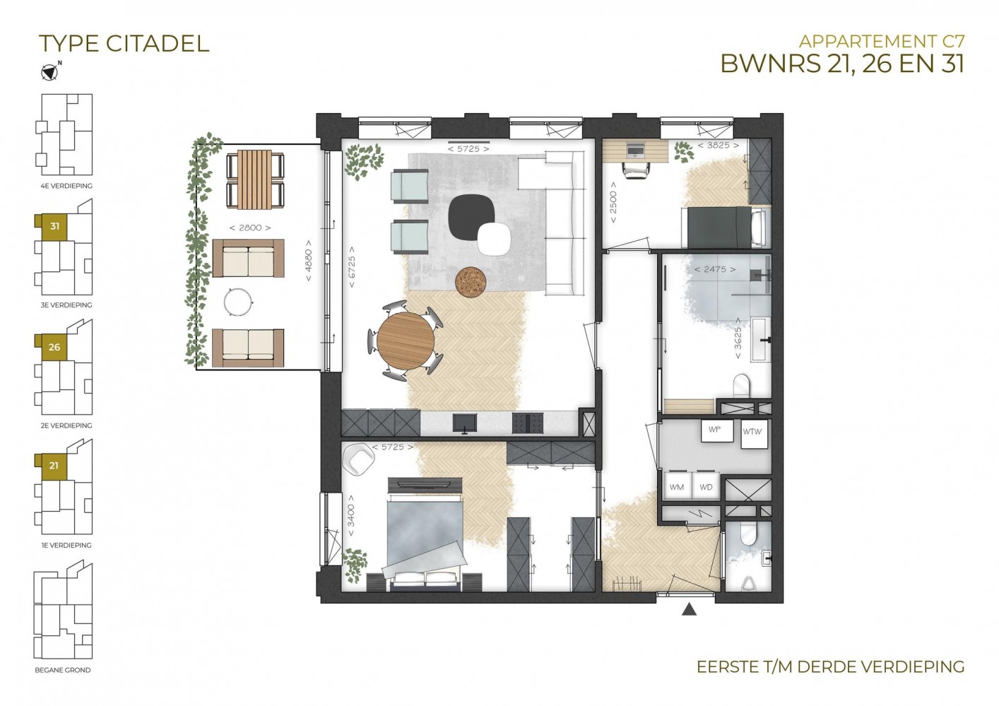 C7 – Bouwnummers 21 (1e verd), 26 (2e verd), 31 (3e verd)