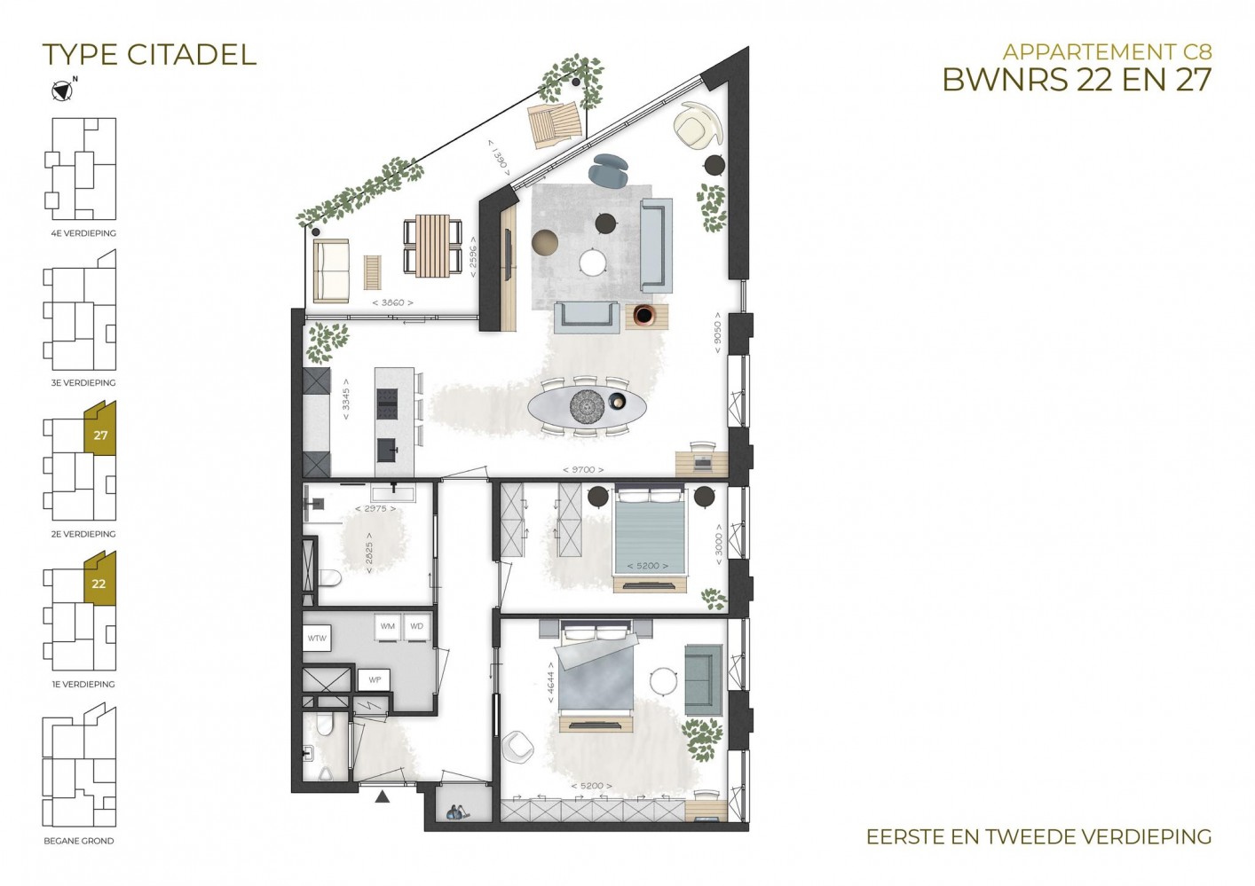In Citadel kiest u uit 23 luxe appartementen, variërend van circa 82 m² tot 157 m², met grote raampartijen, riante buitenruimtes (soms zelfs twee!) en schitterend uitzicht op het water en de stad.