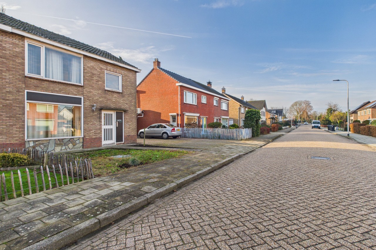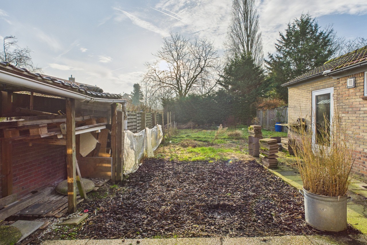 De diepe tuin is gunstig gelegen op het zuiden en biedt volop ruimte om deze geheel naar eigen wens aan te leggen. Hier is het heerlijk zonnig en dankzij de vrije achterom is de tuin ook praktisch in gebruik. Aan de voorzijde van de woning bevindt zich bovendien een lange oprit, waar met gemak plaats is voor twee auto’s. Een fijne extra die zorgt voor comfort en gemak in het dagelijks leven. Aansluitend bevindt zich de aangebouwde stenen garage, voorzien van verwarming, elektra en water. Hier is tevens de cv-opstelling geplaatst en vanuit de garage is er een directe doorgang naar de tuin.