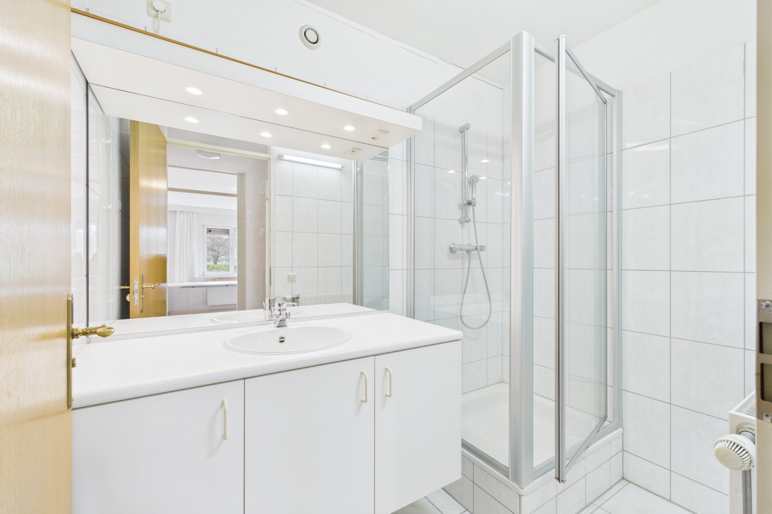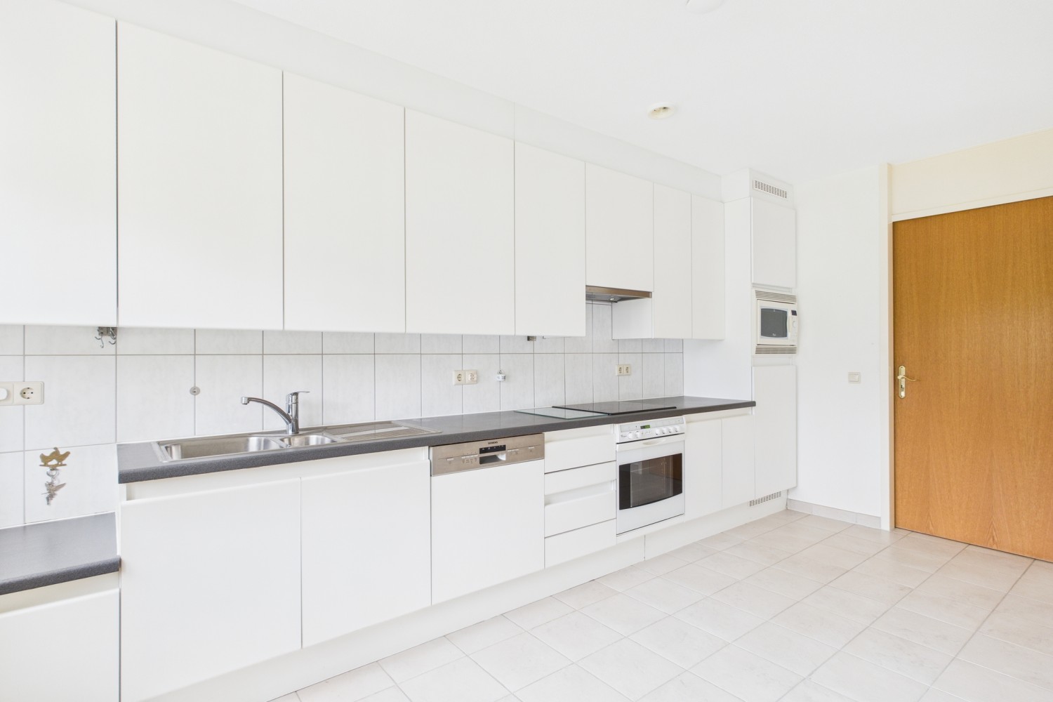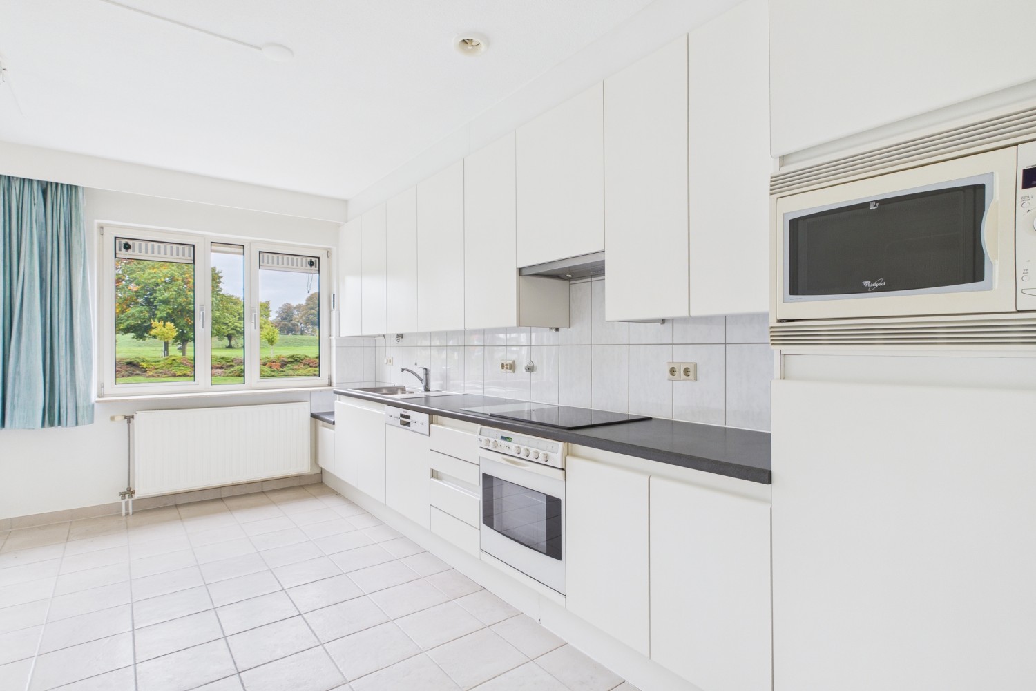 Bij binnenkomst valt direct de royale hal op, met natuurstenen vloer en toegang tot een gastentoilet, meterkast en praktische berging. De ruime L-vormige woonkamer baadt in het licht dankzij de grote raampartijen en schuifdeuren die leiden naar het zonnige balkon op het zuiden. Hier kijk je uit over de eeuwenoude stadswallen en de karakteristieke molen — een uitzicht dat nooit verveelt. De keuken vormt het hart van de woning en biedt volop ruimte om te koken en te genieten. Deze is uitgerust met inbouwapparatuur en grenst aan een handige bijkeuken met aansluitingen voor wasmachine, droger en ruimte voor een vriezer.