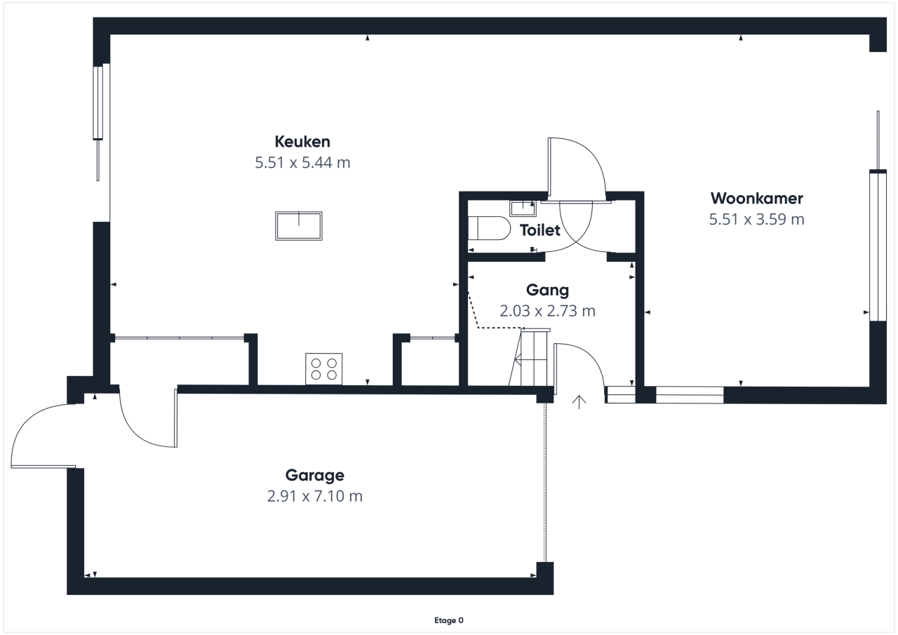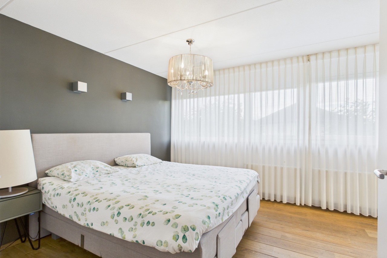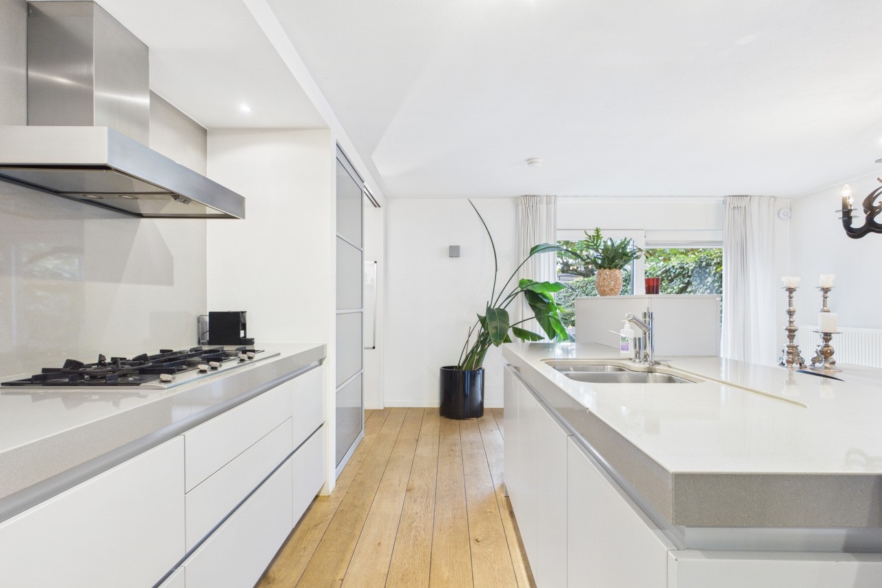Via de hal met meterkast en toilet bereik je de lichte doorzonkamer, waar het daglicht vrij spel heeft. Aan de voorzijde bevindt zich de gezellige woonkamer in L-opstelling, terwijl aan de achterzijde de moderne keuken met inbouwapparatuur en een stijlvol spoeleiland is gesitueerd. De schuifpui naar de tuin zorgt voor een vloeiende overgang tussen binnen en buiten, waardoor het wooncomfort nog verder toeneemt. Tussen de keuken en de garage ligt een praktische bergruimte met schuifdeuren, ideaal voor voorraad of huishoudelijke spullen. De inpandig bereikbare garage is voorzien van een wateraansluiting, witgoedaansluitingen en een elektrische deur.