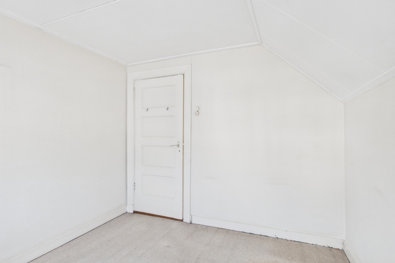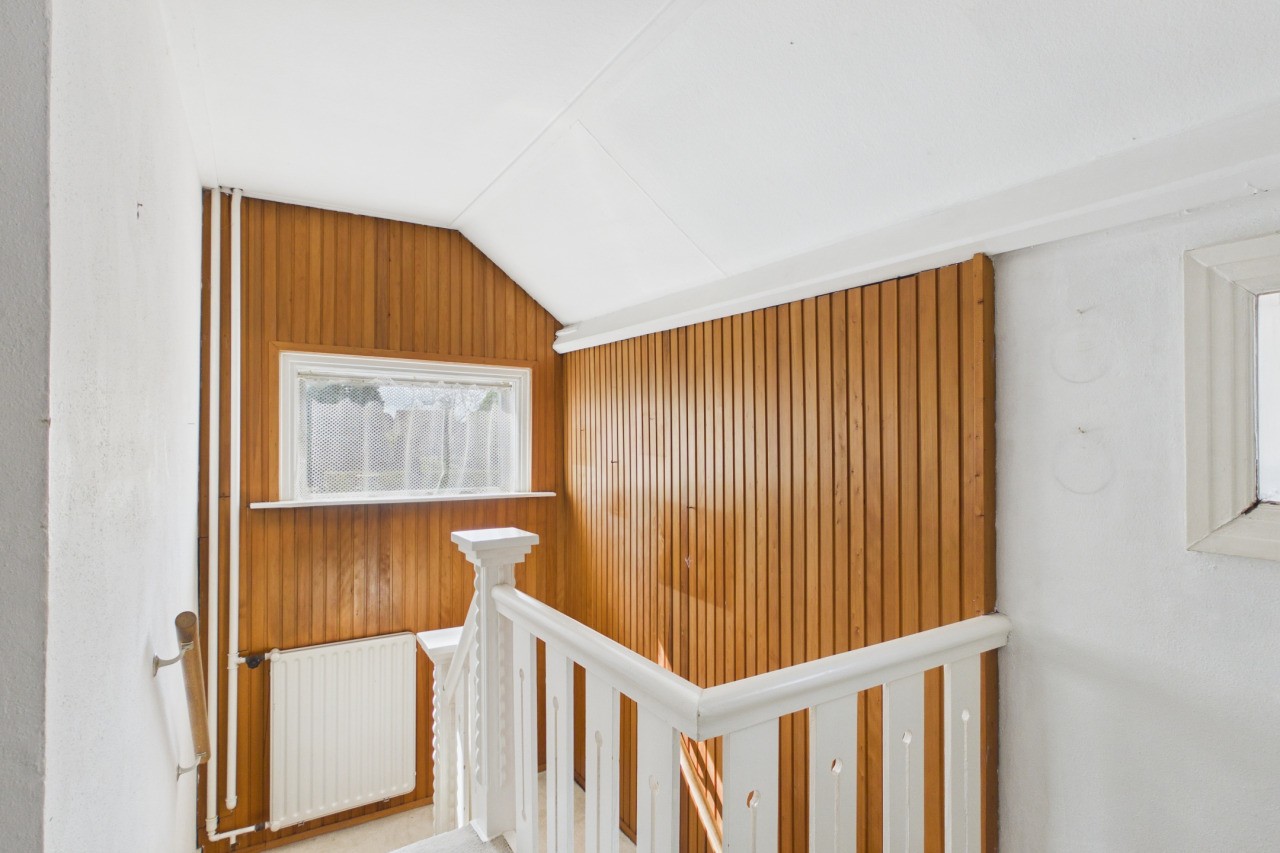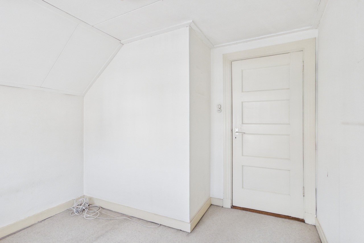 Overloop met toegang tot drie slaapkamers en de badkamer, voorzien van wastafel, ligbad en toilet. Via een luik in de achterste slaapkamer is de bergzolder bereikbaar. De woning beschikt over een Franse kapconstructie.