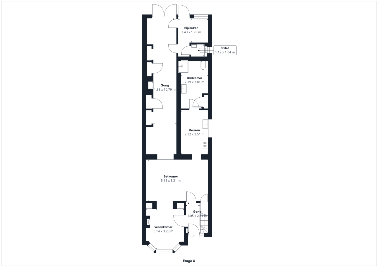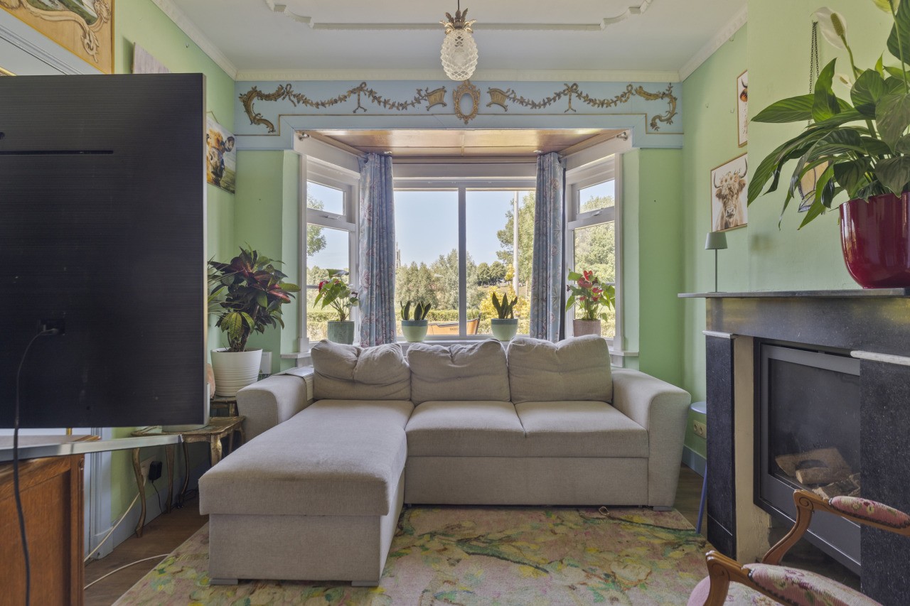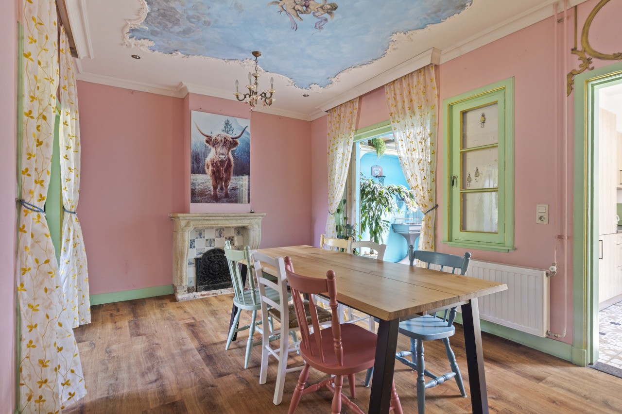 Achter de klassieke gevel ligt een verrassend ruime woning. In de hal vind je originele vloertegels en paneeldeuren, en ook de woonkamer ademt sfeer met een erker, kamer-en-suite en een gashaard. De eetkamer vormt het hart van het huis, met sierplafond, zandstenen schouw en toegang tot de kelder, keuken en aanbouw. Beide kamers zijn voorzien van een solide betonvloer.