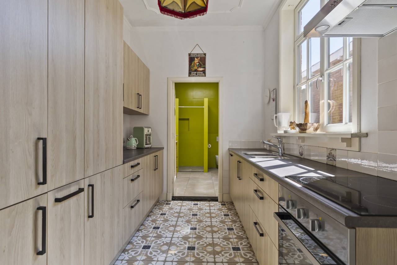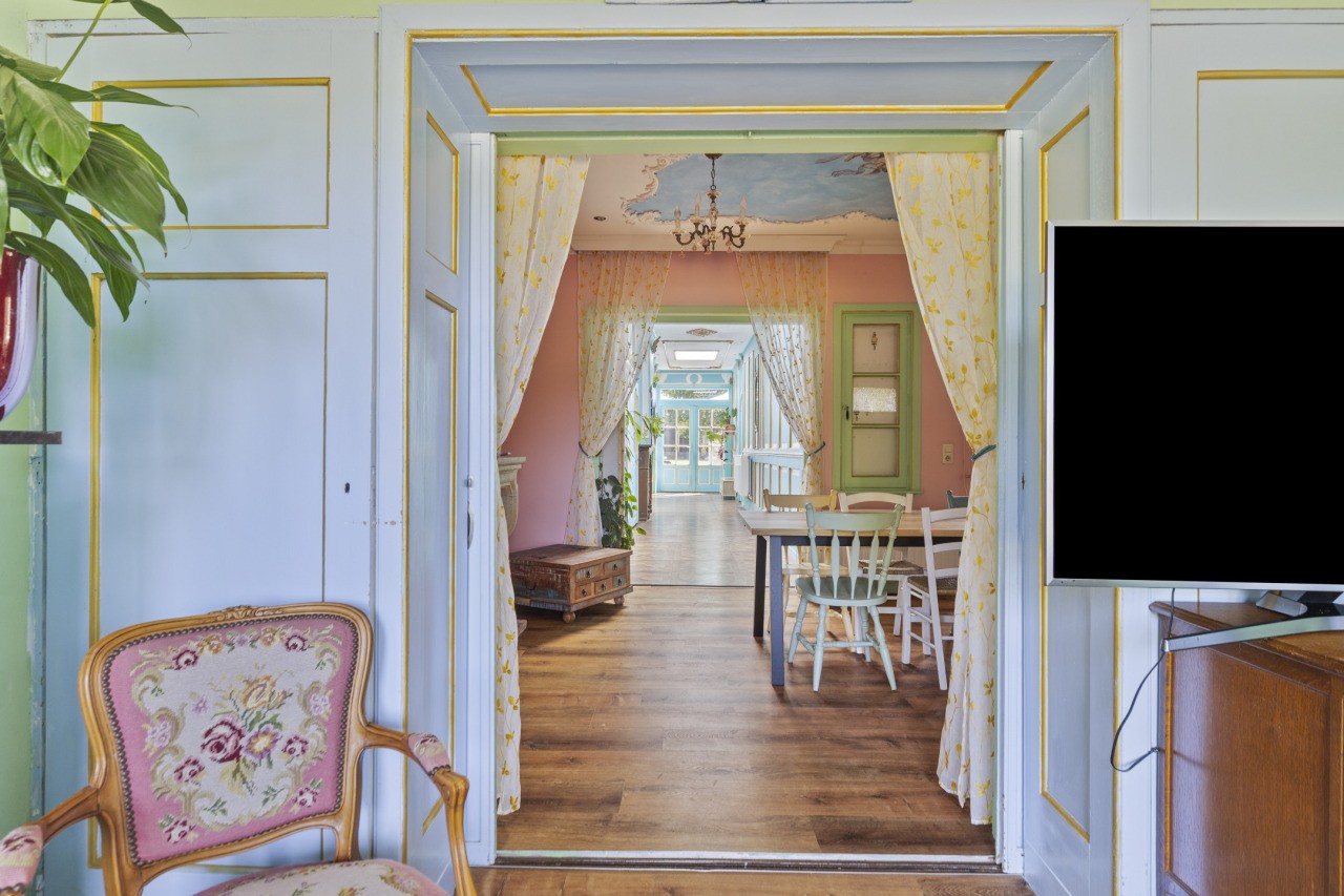 De keuken (2020) combineert hedendaags gemak met een knipoog naar het verleden. Denk aan een dubbele spoelbak, moderne inbouwapparatuur en klassieke details in tegels en afwerking. Vanuit de eetkamer bereik je de aanbouw: een riante ruimte van ruim elf meter lang met praktische kastenwand en dubbele tuindeuren.