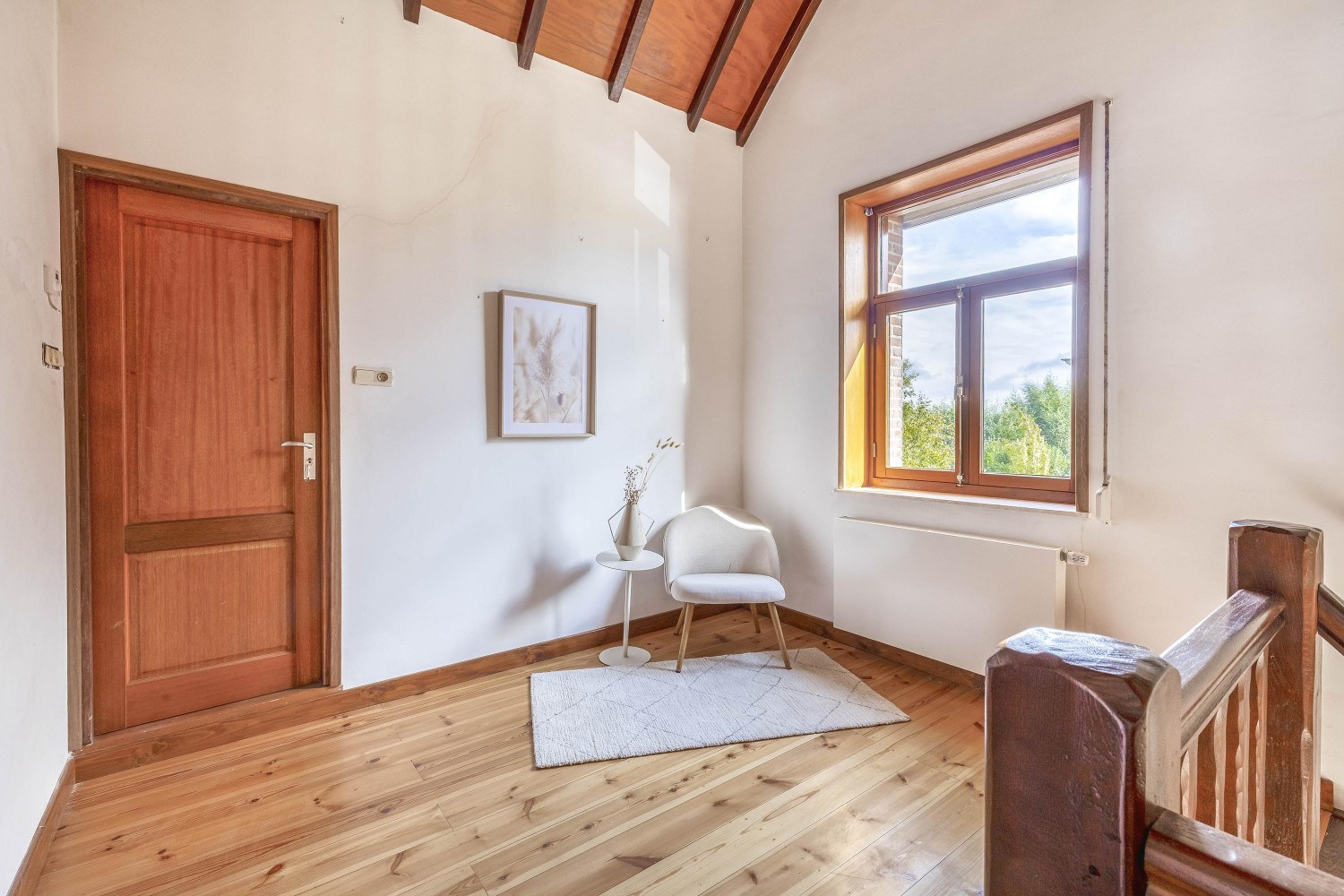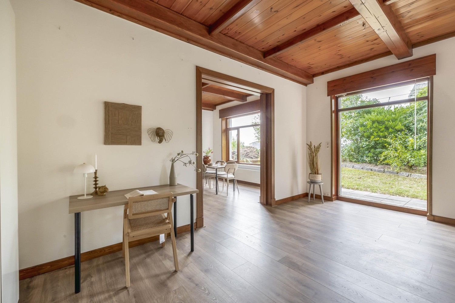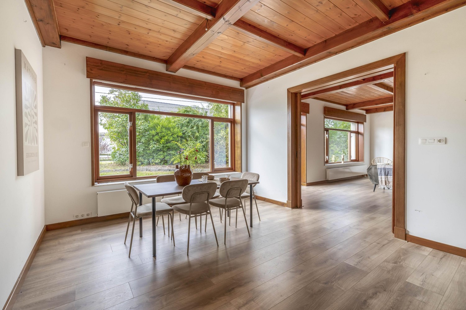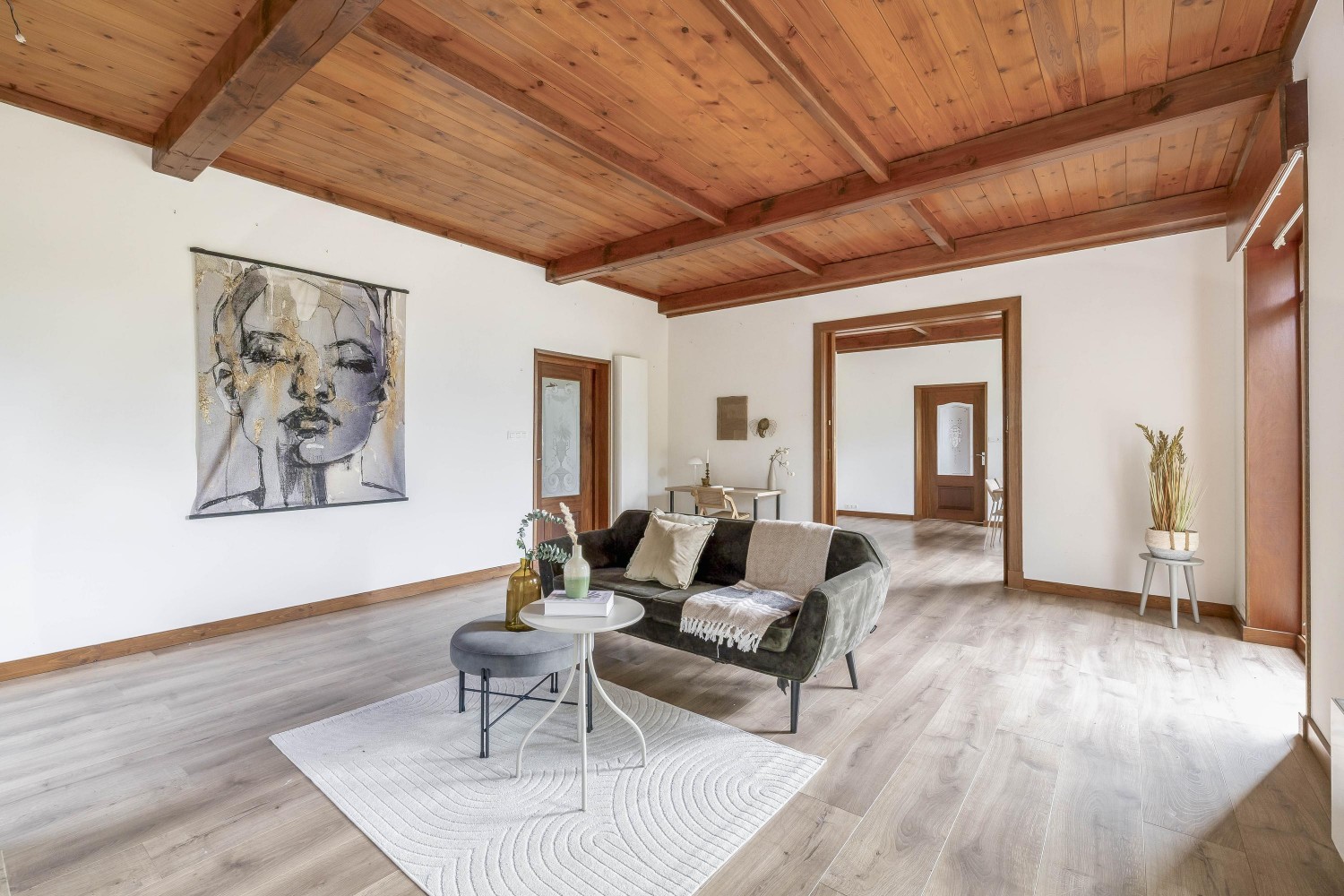 - Vanuit deze kamer bereik je de royale woonkamer met schouw en kachel, een sfeervolle plek met veel ruimte.