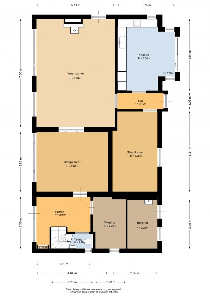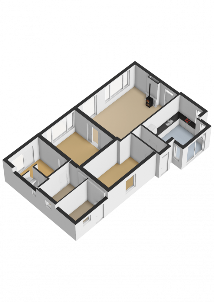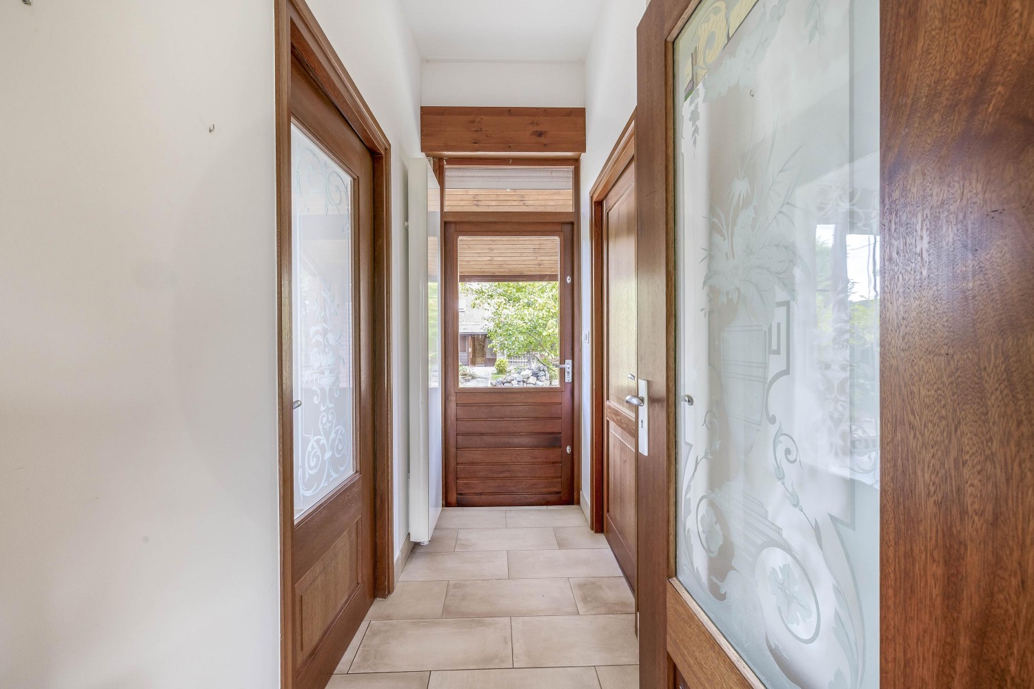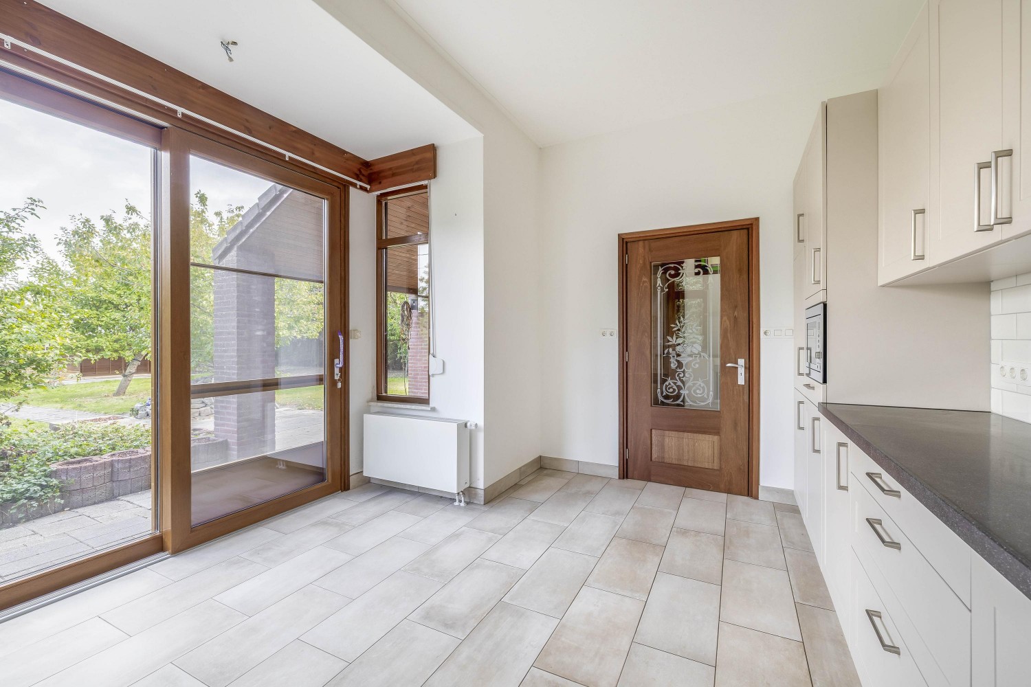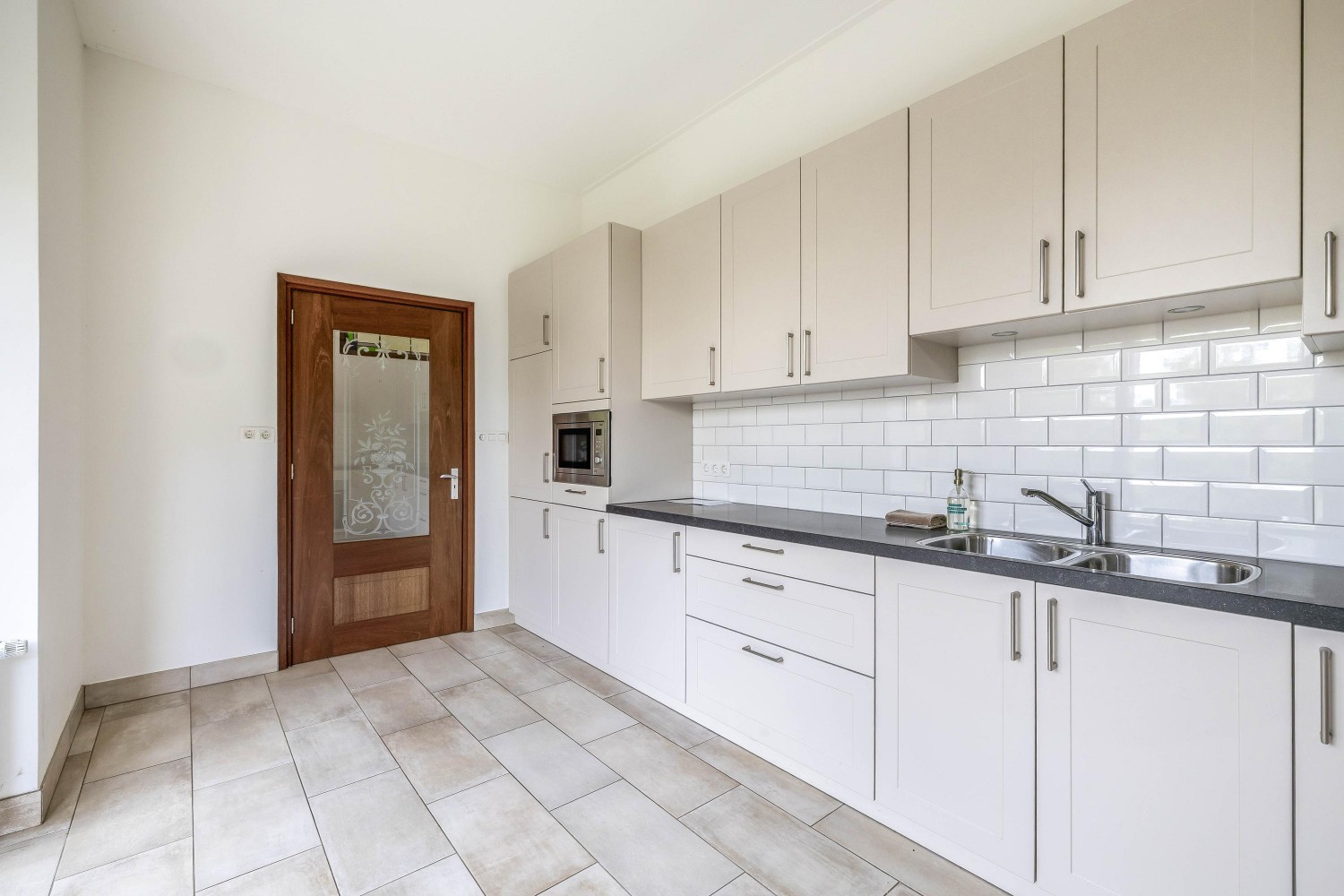 - Aansluitend ligt een gang met achterdeur en toegang tot een slaapkamer en de woonkeuken.