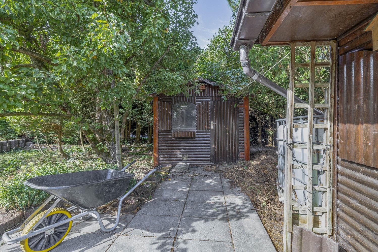 De achtertuin is diep en altijd voorzien van een plek in de zon of schaduw. Noordelijk gelegen, maar dankzij de ruimte verrassend veelzijdig in gebruik. Er zijn twee houten bergingen en een houten overkapping aanwezig, ideaal voor opslag of hobby’s.