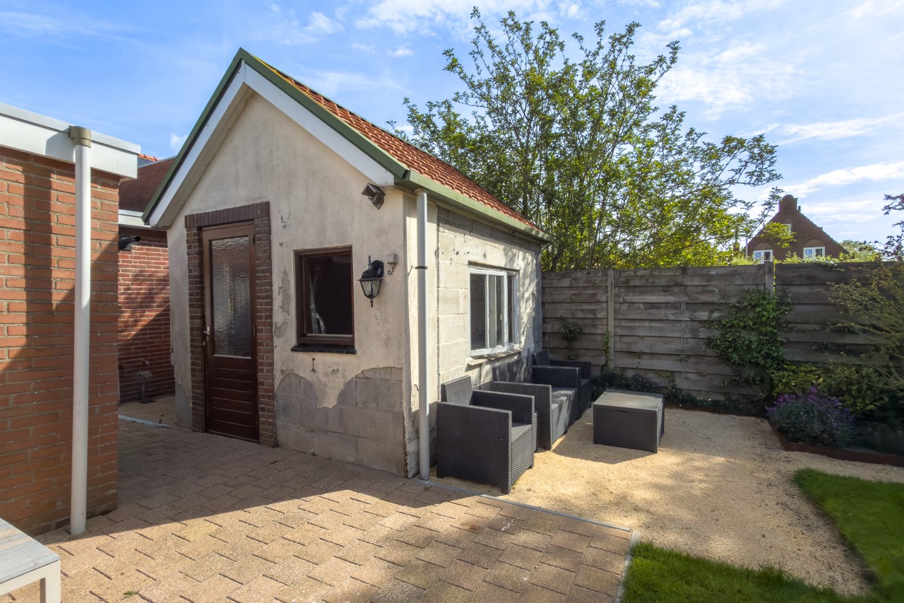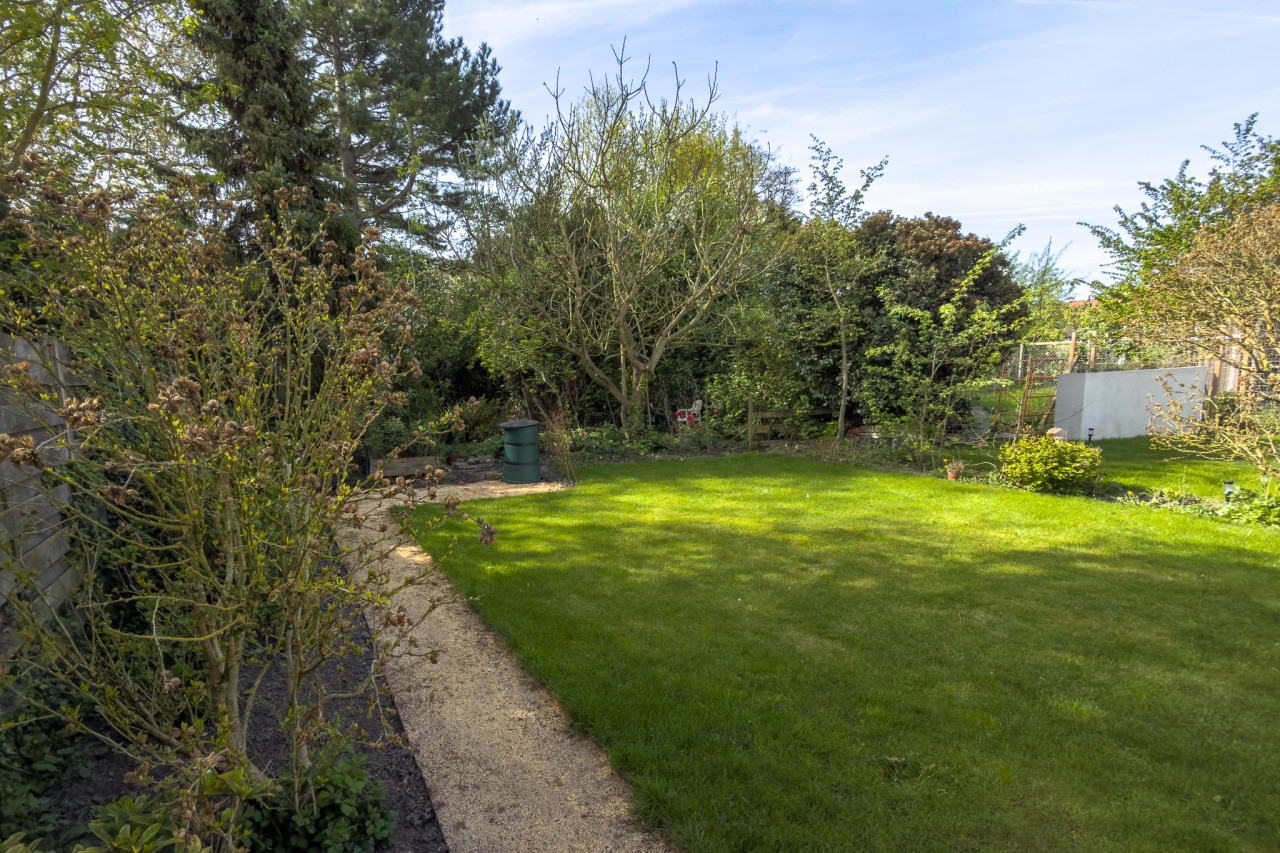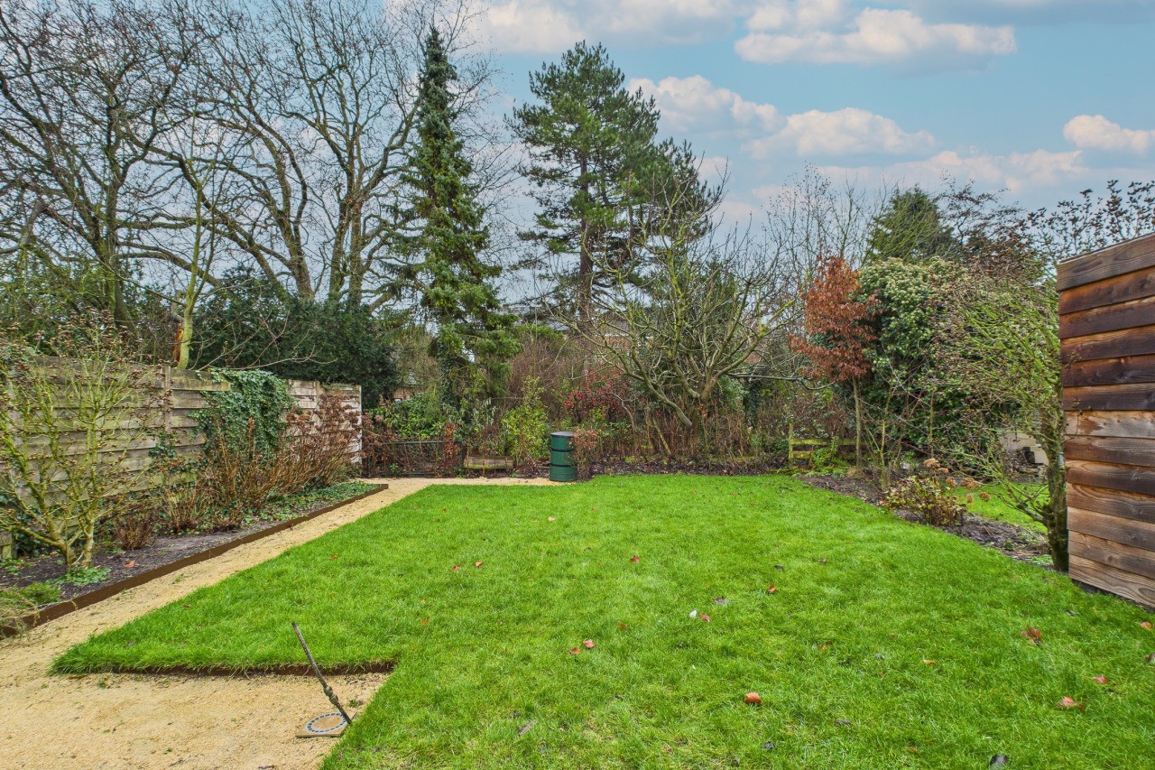 De achtertuin ligt op het zuiden en is diep en verzorgd aangelegd met een ruim terras, een gazon en diverse bloem- en plantenborders. Hier vind je altijd een zonnig plekje om te ontspannen of buiten te zitten. In de tuin staat bovendien drie bergingen praktische bergingen, ideaal voor fietsen, tuingereedschap of extra opslag.