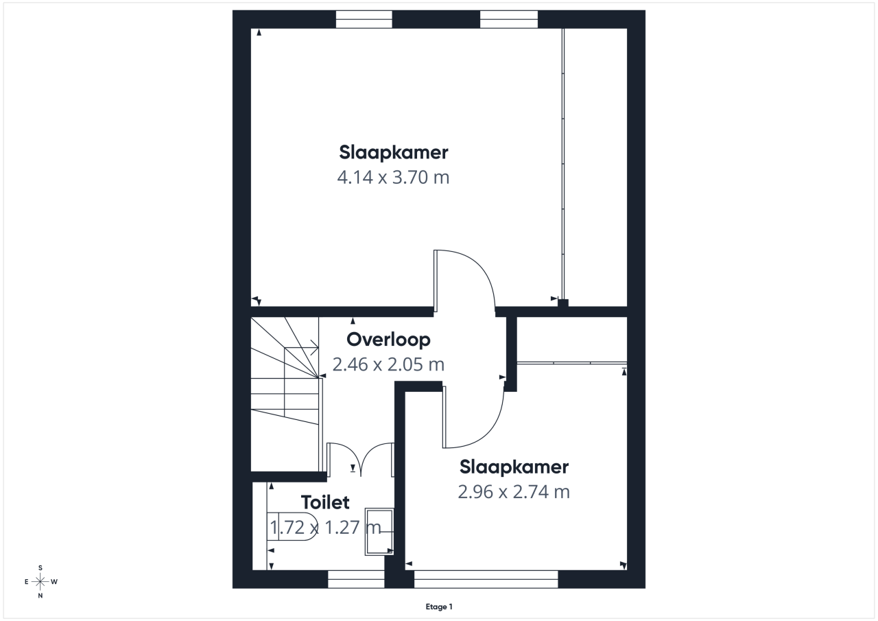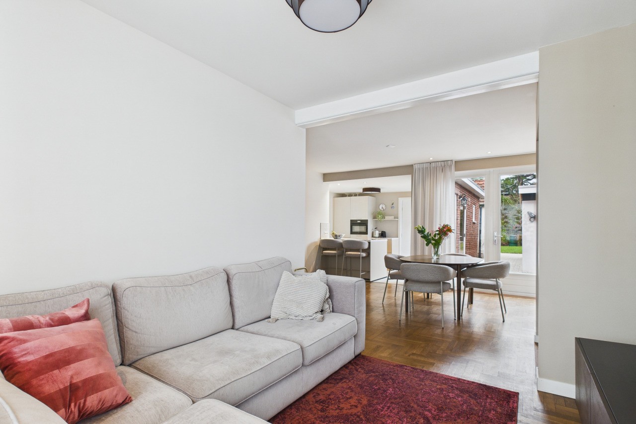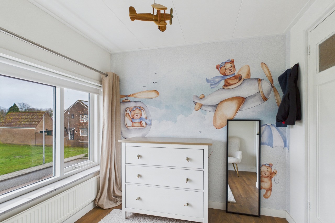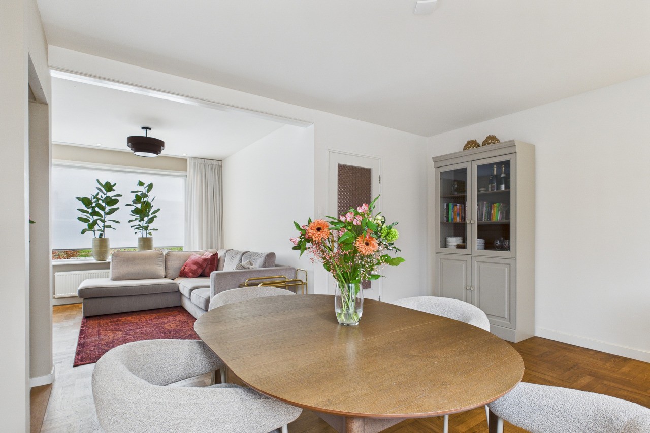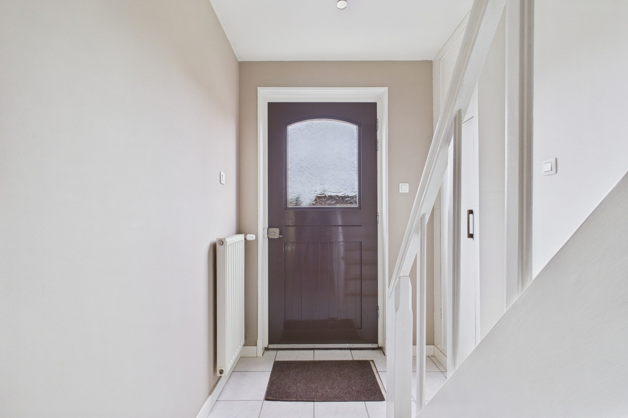 Op de eerste verdieping geeft de overloop toegang tot twee slaapkamers en een royale toiletruimte met wastafel en meubel. De grootste slaapkamer beschikt over een grote inbouwkastenwand, wat veel bergruimte biedt.