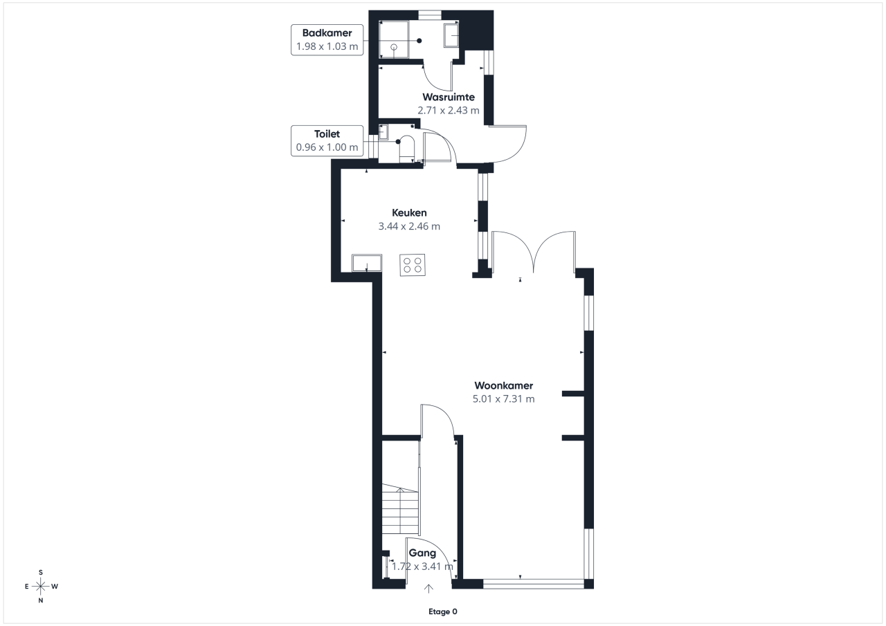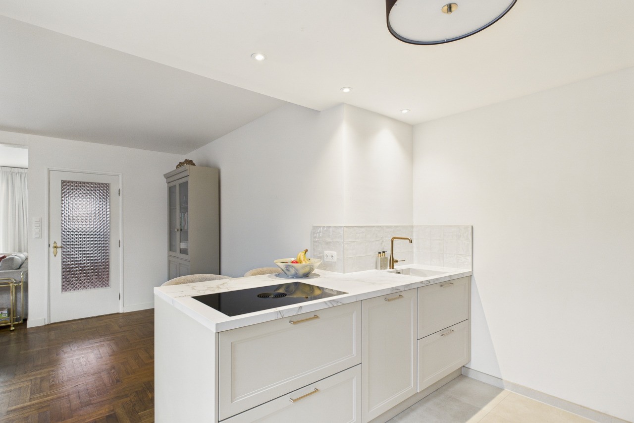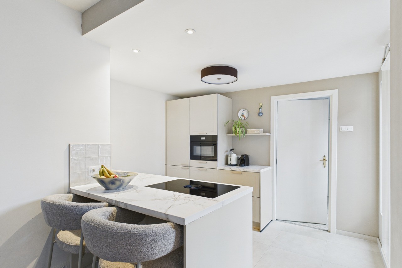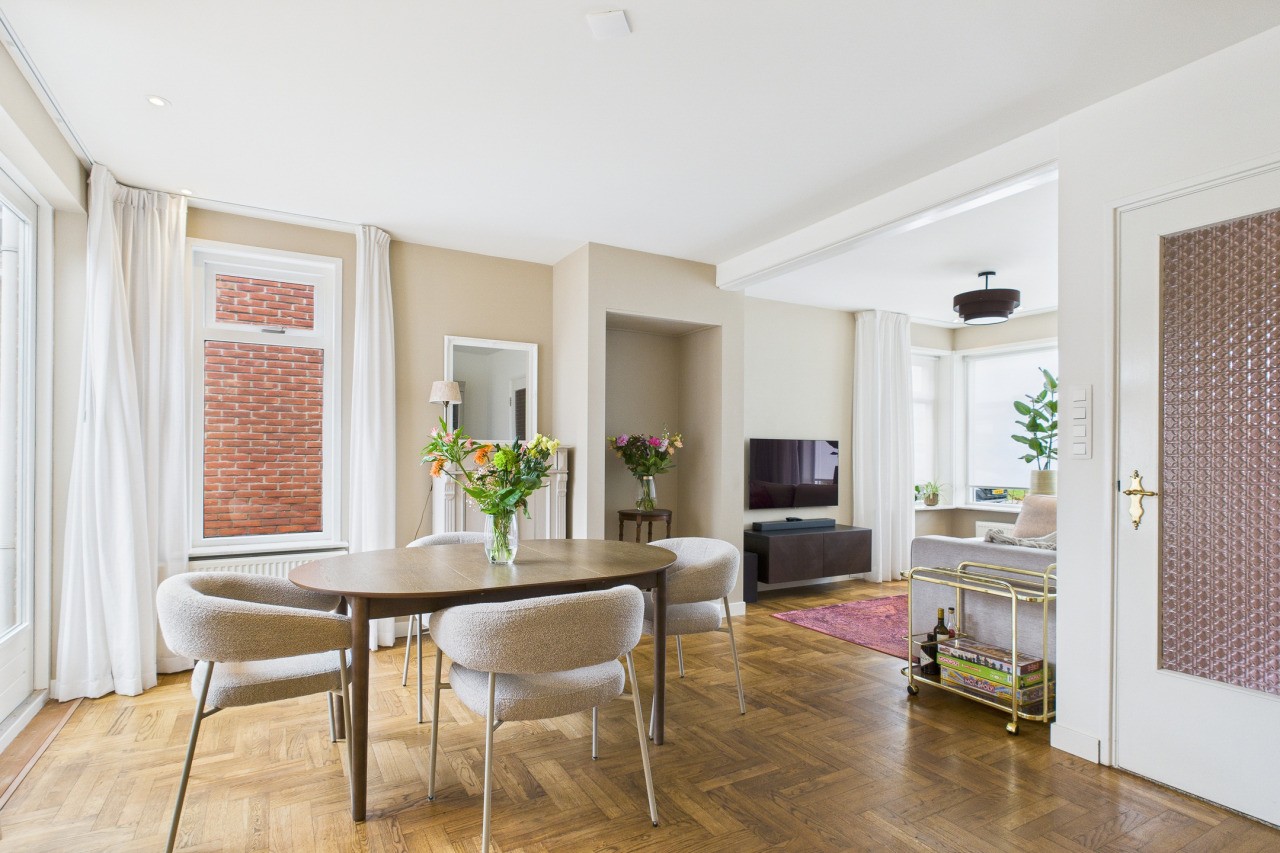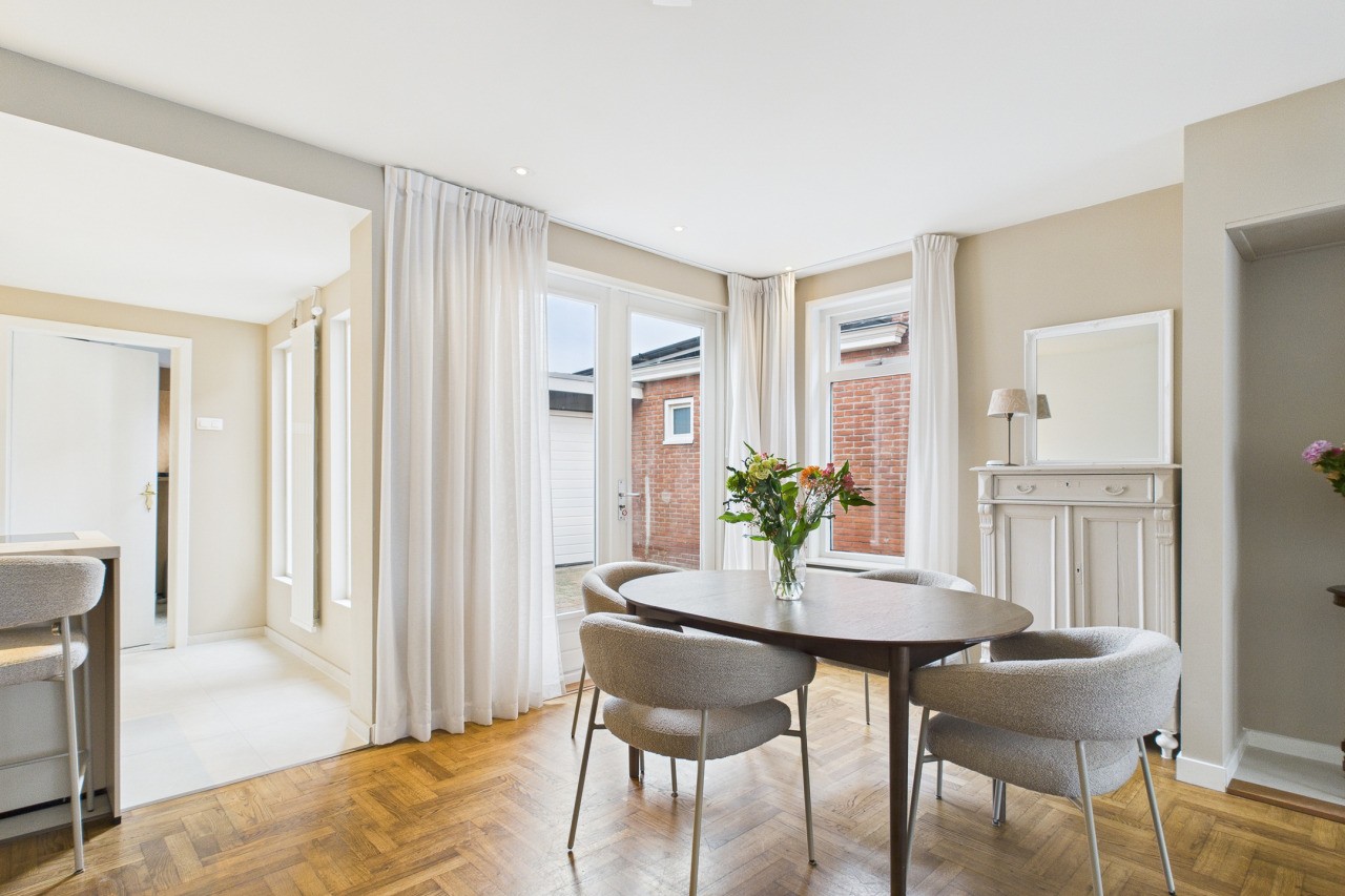 Je komt de woning binnen in de hal met meterkast en trapopgang naar de verdieping, met trapkast. Vanuit de hal stap je de lichte en sfeervolle woonkamer binnen. Deze is afgewerkt met een mooie parketvloer en dankzij de openslaande deuren is er een directe verbinding met de achtertuin. De open keuken vormt het hart van de woning en is in 2024 vernieuwd. De moderne en stijlvolle inbouwkeuken is compleet uitgerust met een keramische kookplaat met ingebouwde Bora-afzuiging, combioven, koelkast, vriezer, vaatwasser en spoelbak. Aansluitend bevinden zich de wasruimte met achterdeur naar de tuin, het toilet en de badkamer met douche en wastafelmeubel.