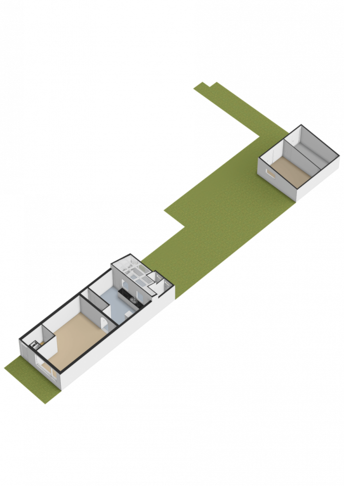 De achtertuin is diep en biedt volop mogelijkheden. Achter op het perceel staat een vrijstaande garage/berging van circa 30 m2 met eigen oprit, bereikbaar via de achterzijde.