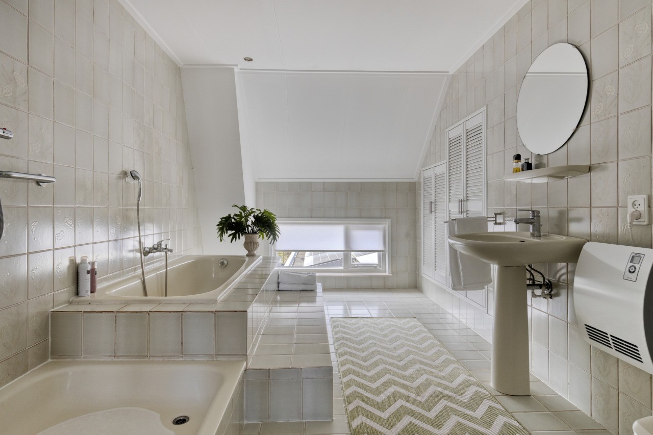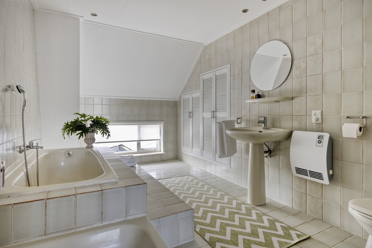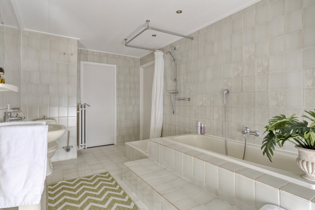 Op de eerste verdieping kom je uit op de overloop die toegang biedt tot 3 slaapkamers, stuk voor stuk voorzien van vaste kastruimte. De ruime ouderslaapkamer is aan de voorzijde gelegen en heeft een prettige lichtinval. De badkamer is uitgevoerd in een lichte kleurstelling en beschikt over vaste kasten, een ligbad, een separate douche, een wastafel en een toilet, waardoor het een complete en comfortabele ruimte is.