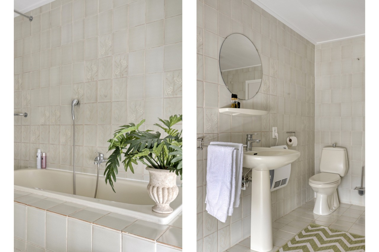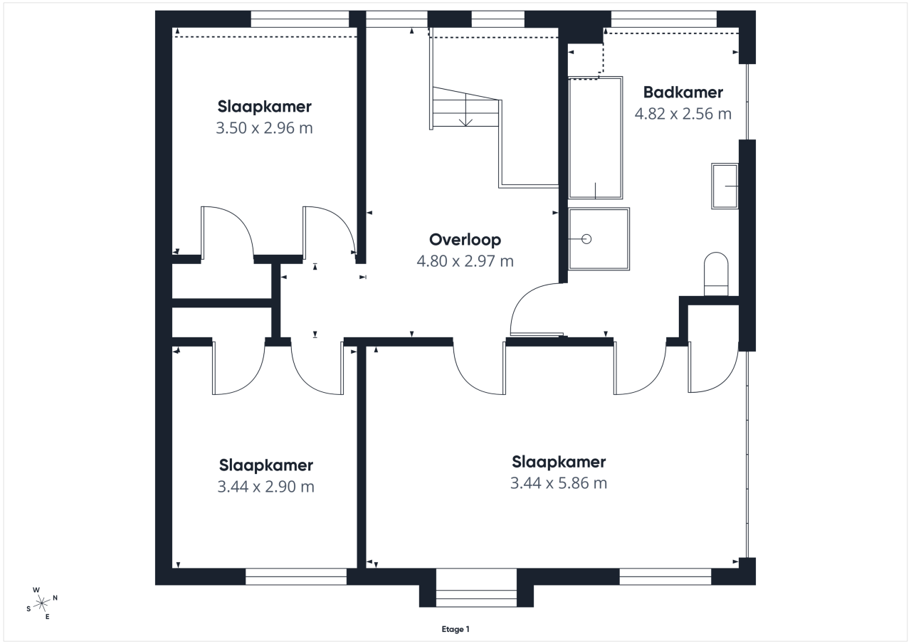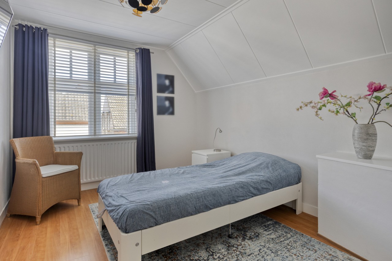 Op de eerste verdieping kom je uit op de overloop die toegang biedt tot 3 slaapkamers, stuk voor stuk voorzien van vaste kastruimte. De ruime ouderslaapkamer is aan de voorzijde gelegen en heeft een prettige lichtinval. De badkamer is uitgevoerd in een lichte kleurstelling en beschikt over vaste kasten, een ligbad, een separate douche, een wastafel en een toilet, waardoor het een complete en comfortabele ruimte is.