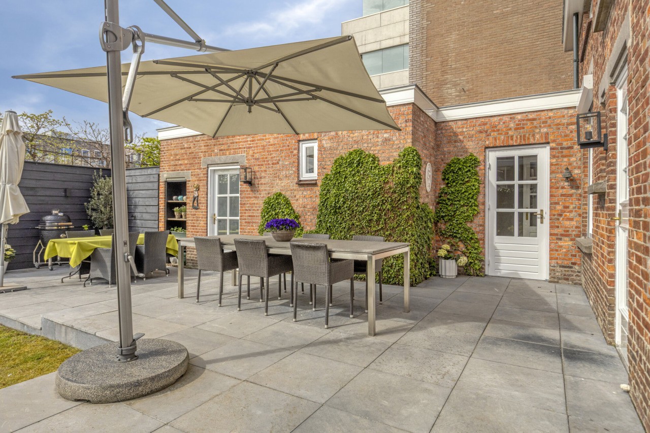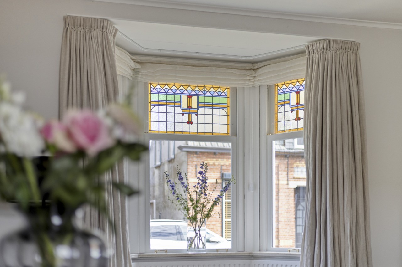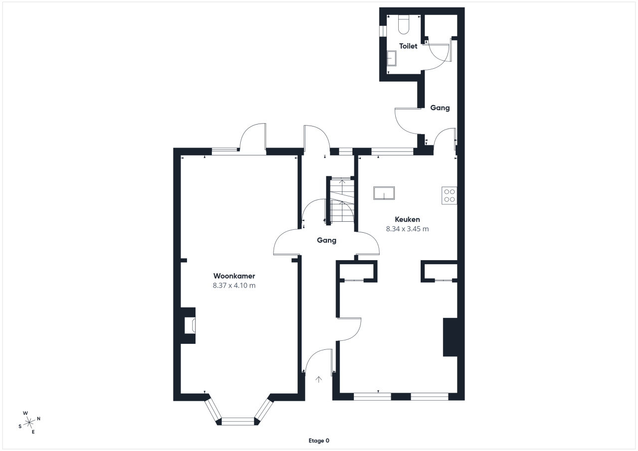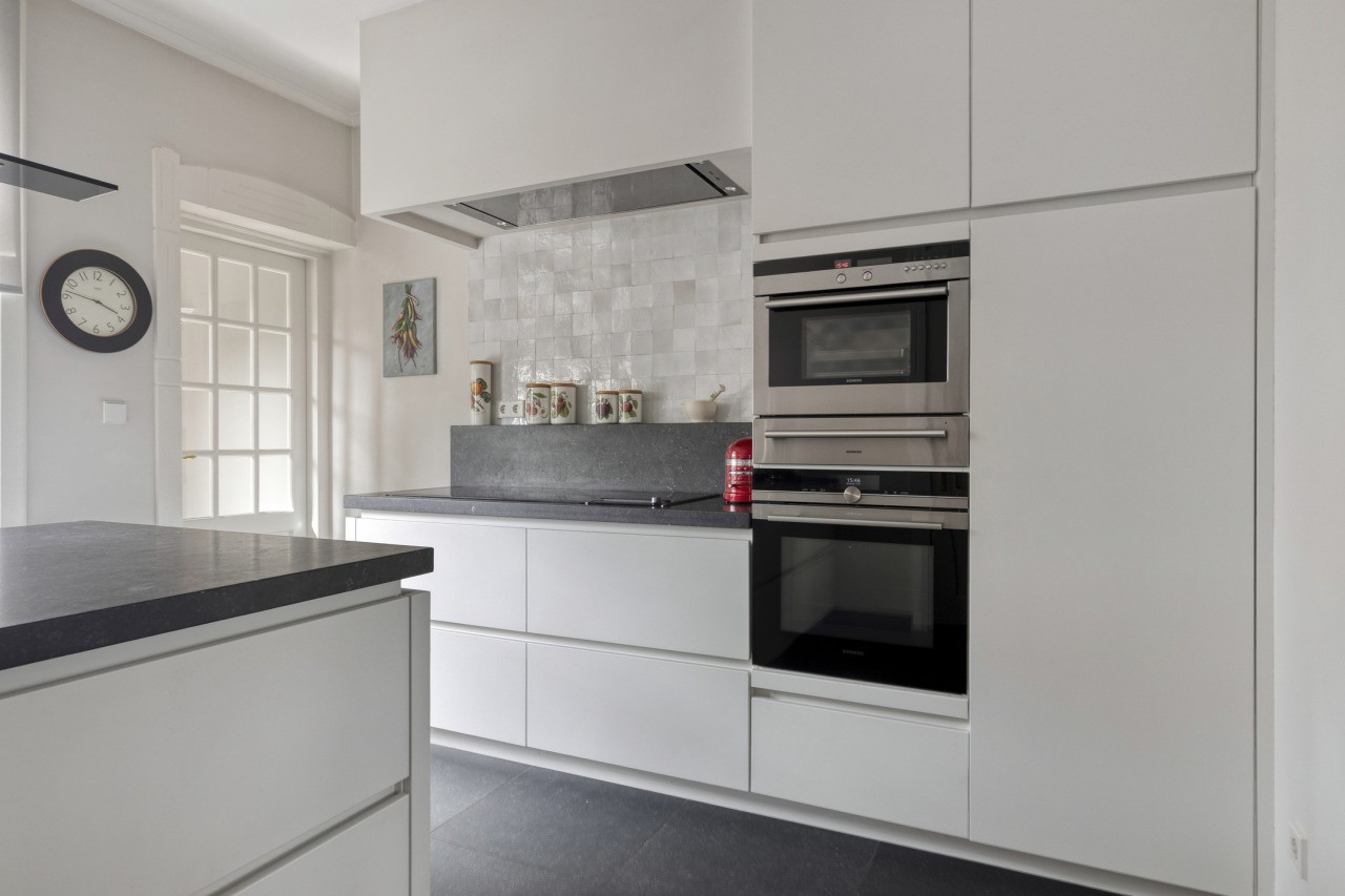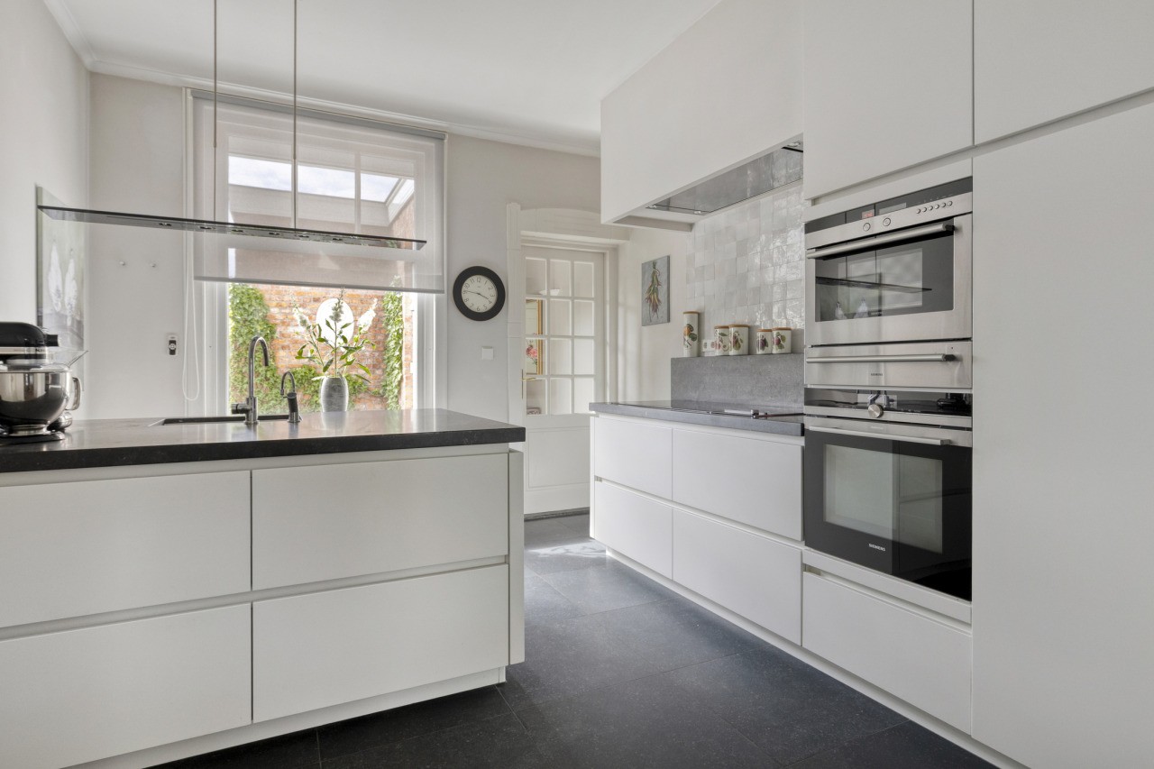 Bij binnenkomst kom je in een lange hal vanuit waar je toegang hebt tot de woonkamer en de keuken, evenals de kelder en de achtertuin, en vind je de trapopgang naar de eerste verdieping. De doorzonwoonkamer is heerlijk licht en voelt uitnodigend aan, met een gezellige haard als centraal punt. Aan de achterzijde bevindt zich de voormalige ensuite eetkamer met directe toegang tot de tuin. Authentieke elementen zoals glas-in-lood, sierlijke lambrisering en originele deurposten zijn hier prachtig bewaard gebleven en geven de ruimte een karaktervolle uitstraling. Aan de andere zijde van de hal ligt de eetkamer die in verbinding staat met de keuken en beschikt over vaste kastruimte. De keuken is verzorgd uitgevoerd en voorzien van inbouwapparatuur en een spoeleiland. Vanuit hier bereik je een tussenhal met toegang tot het toilet, extra bergruimte en de tuin.