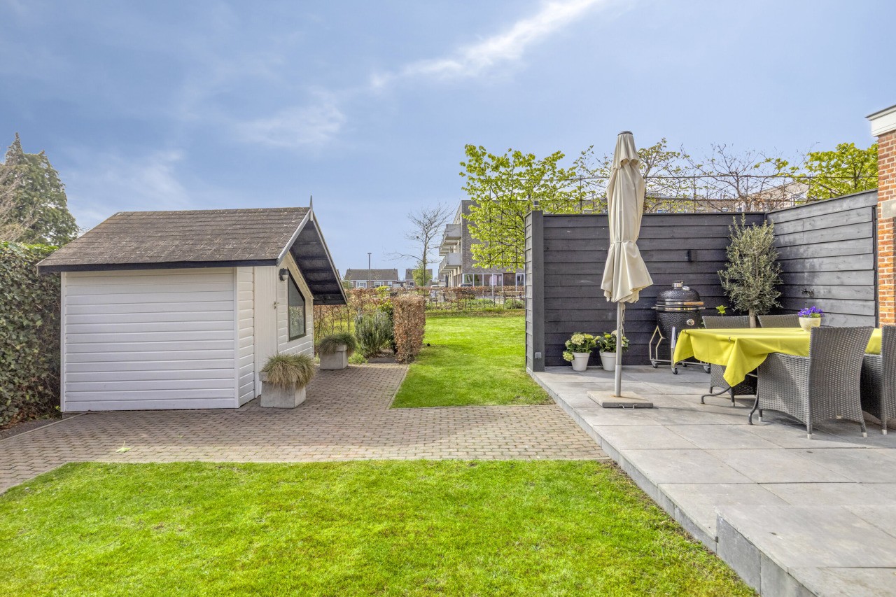 Rondom de woning ligt een verzorgde en zonnige tuin die volop privacy en ruimte biedt. De achtertuin, gelegen op het westen, is een fijne plek om te genieten van de middag- en avondzon. Hier vind je een prettig terras, een berging voor het opslaan van materialen en gereedschap en een netjes aangelegd gazon, wat het geheel compleet maakt.