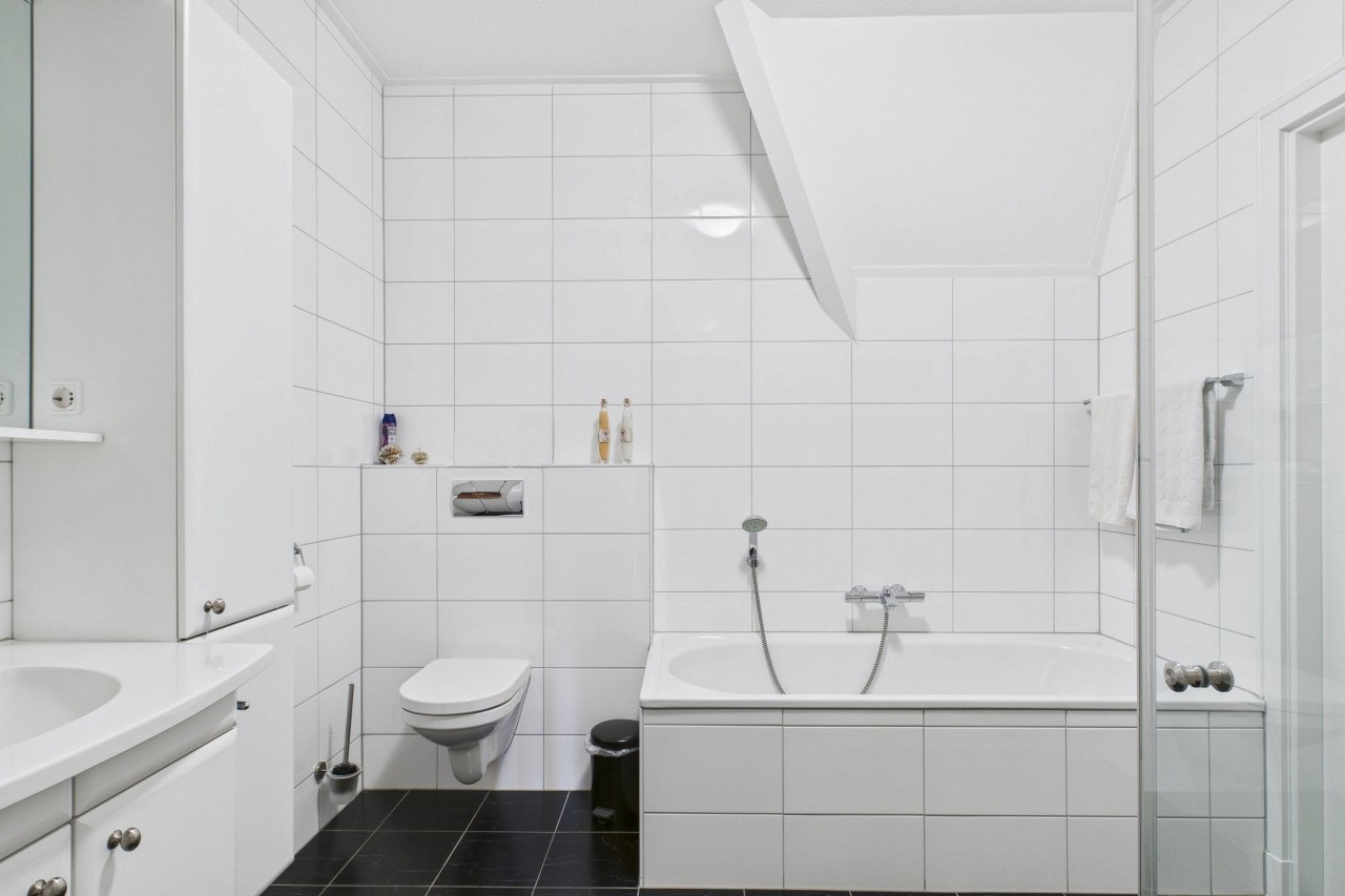 - complete badkamer met ligbad, douche (glazen douchecabine), wastafelmeubel en 2e hangtoilet