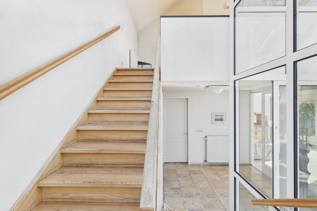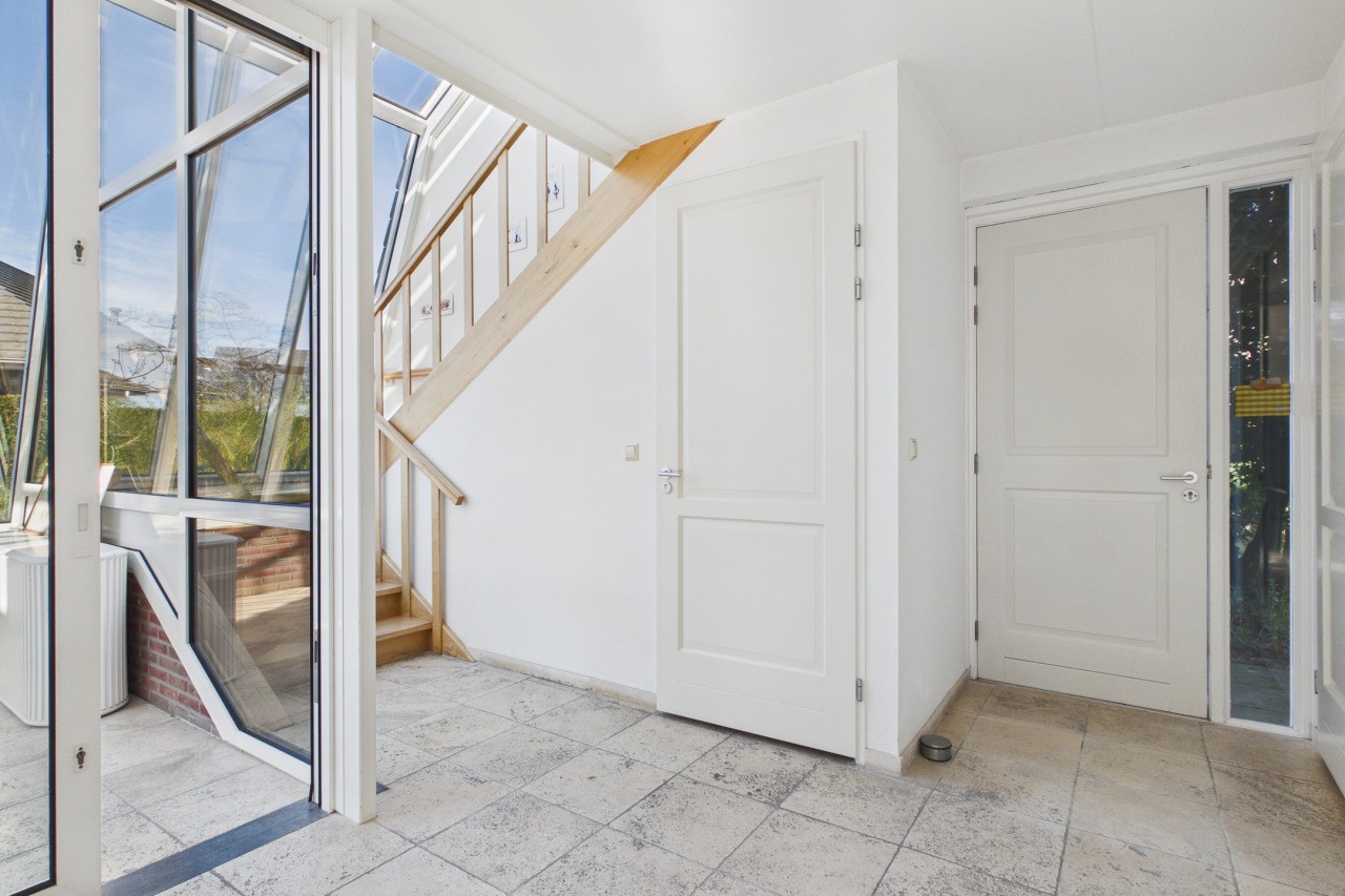 - Rondom voorzien deels (hard) houten kozijnen en deels aluminium kozijnen met dubbelglas