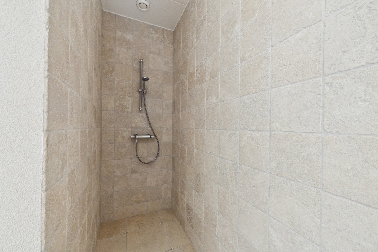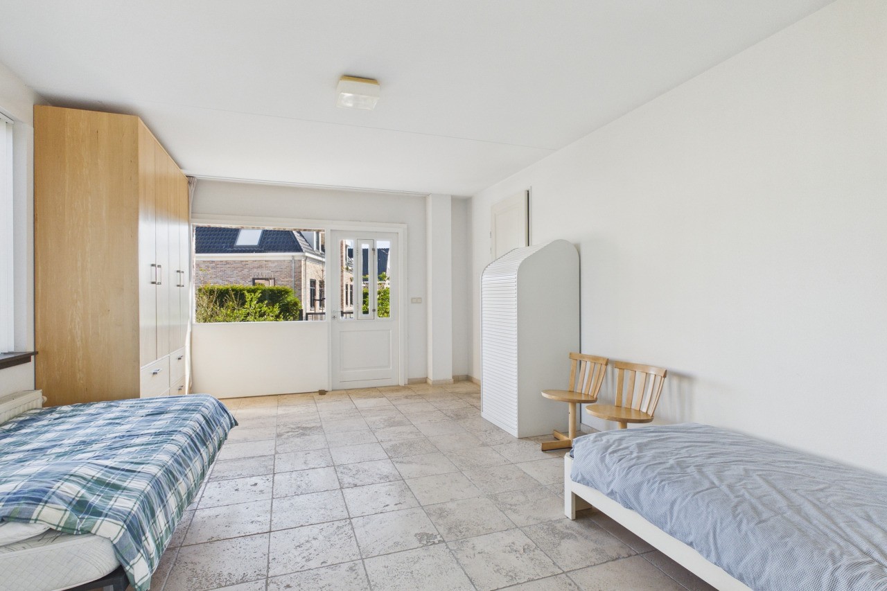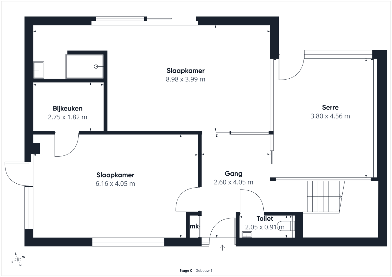 Je komt de woning binnen in de hal, waar zich de meterkast, het toilet met fonteintje en de trapopgang naar de verdieping bevinden. Vanuit de hal heb je toegang tot de serre, die een fijne verbinding vormt tussen binnen en buiten. Op de begane grond bevinden zich daarnaast twee ruime slaapkamers. Eén van deze kamers kan gebruikt worden als slaapkamer/hobbykamer en beschikt over een badkamer ensuite, ingericht met een inloopdouche en wastafel. Vanuit deze kamer heb je tevens directe toegang tot de achtertuin. De tweede slaapkamer heeft toegang tot de bijkeuken en ook directe toegang tot de zijtuin.