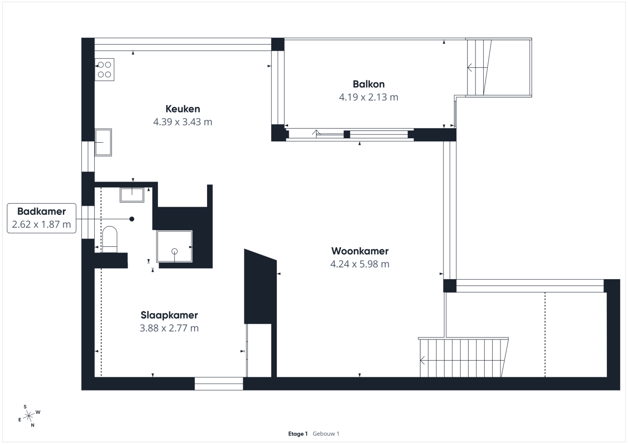 Op de eerste verdieping bevindt zich de woonkamer, die dankzij de grote ramen veel lichtinval heeft. Ook is er een sfeervolle haard (allesbrander) aanwezig. Vanuit de woonkamer heb je toegang tot het balkon, waar je een prachtig uitzicht hebt over het Zeeuws-Vlaamse landschap. De open keuken is geplaatst in een rechte opstelling en is voorzien van een gaskookplaat, combi-oven, koelkast en een dubbele spoelbak. Verder vind je op deze verdieping een ruime slaapkamer met een badkamer ensuite. Deze badkamer is ingericht met een inloopdouche, wastafel en toilet, waardoor ook deze verdieping over alle comfort beschikt.