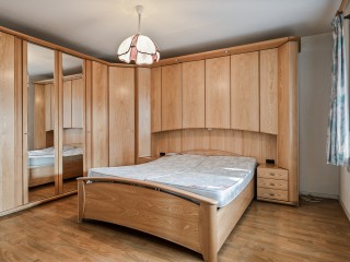 You enter in the hall with passage to the bright living room, equipped with a practical white tiled floor. The L-shaped kitchen offers plenty of work and cupboard space and is equipped with an oven, ceramic hob and fridge.