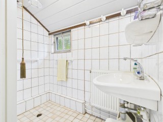 Bij binnenkomst word je verwelkomd in een nette hal, met direct toegang tot het toilet en de badkamer, die is voorzien van een douche en wastafel. Vanuit de hal loop je door naar de ruime keuken – het hart van het huis – waar volop plek is om uitgebreid te koken of gezellig samen te zijn. Via de keuken bereik je ook de trap naar boven. De keuken sluit mooi aan op de woonkamer, die is uitgerust met een handige trapkast en uitzicht biedt op het groene buitenleven.