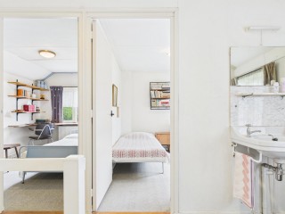 Op de bovenverdieping bevinden zich drie slaapkamers, elk met een eigen uitstraling en volop natuurlijk licht. Twee van de kamers beschikken over vaste kasten – praktisch voor het opbergen van kleding, linnengoed of speelgoed. Of je nu behoefte hebt aan een rustige werkplek, logeerkamer of kinderkamer: deze verdieping biedt flexibiliteit voor elk gezin of levensstijl.